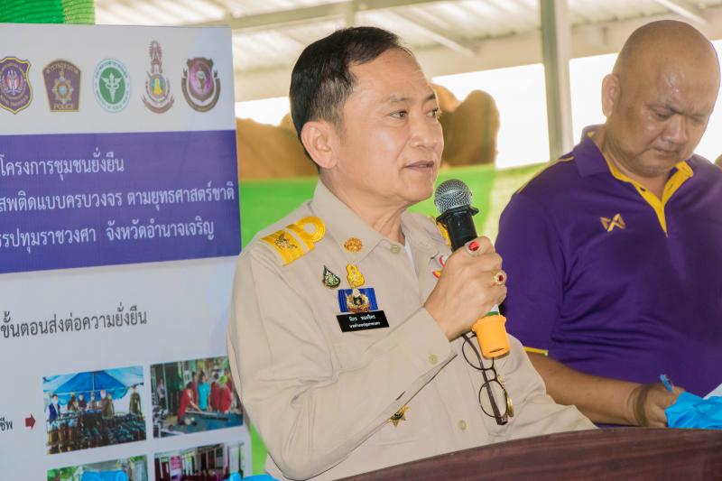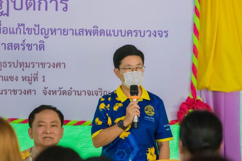 รายละเอียด : วันที่ 4 มีนาคม 2566 เวลา 14.00 น. นายชนาส ชัชวาลวงศ์ ผู้ว่าราชการจังหวัดอำนาจเจริญ เป็นประธานในพิธีเปิดโครงการดำเนินงานชุมชนยั่งยืนเพื่อแก้ไขปัญหายาเสพติดแบบครบวงจร ตามยุทธศาสตร์ชาติ ประจำปีงบประมาณ 2566 พร้อมด้วยนางจินตนา ชัชวาลวงศ์ นายกเหล่ากาชาดจังหวัดอำนาจเจริญ โดย นายนิกร ทองจิตร นายอำเภอปทุมราชวงศา นางดาราการณ์ ทองจิตร ที่ปรึกษาเหล่ากาชาดจังหวัดอำนาจเจริญ ให้การต้อนรับ พร้อมหัวหน้าส่วนราชการระดับอำเภอ นายประจิณ สีทิม นายกเทศมนตรีตำบลนาป่าแซง มอบหมายให้ นางอนงค์ โพธารินทร์ รองนายกฯ ข้าราชการ พนักงานจ้าง สมาชิก สท. กำนัน ผู้ใหญ่บ้านและประชาชนในพื้นที่ ร่วมต้อนรับ ในการนี้ได้เยี่ยมชมผลิตภัณฑ์ สินค้าในท้องถิ่น ณ วัดอุดรมงคล บ้านนาป่าแซง หมู่ที่ 1 ตำบลนาป่าแซง อำเภอปทุมราชวงศา จังหวัดอำนาจเจริญ