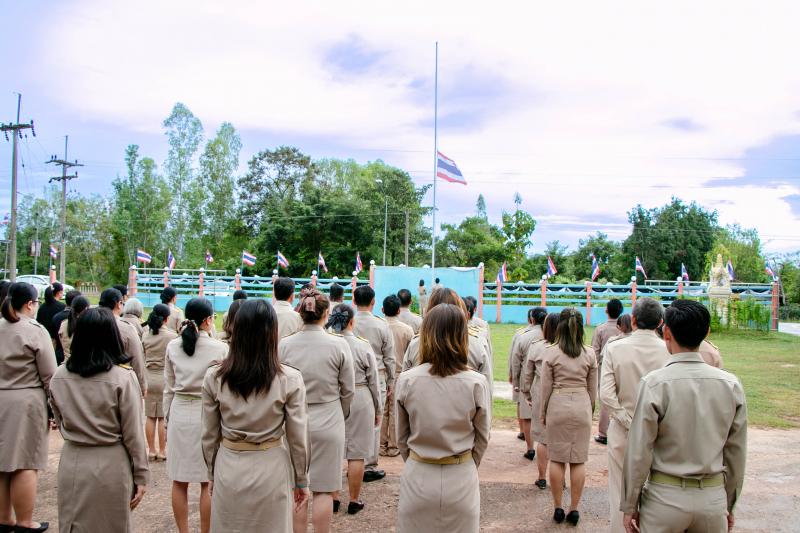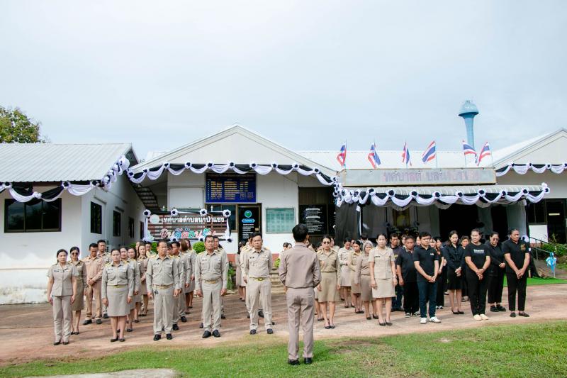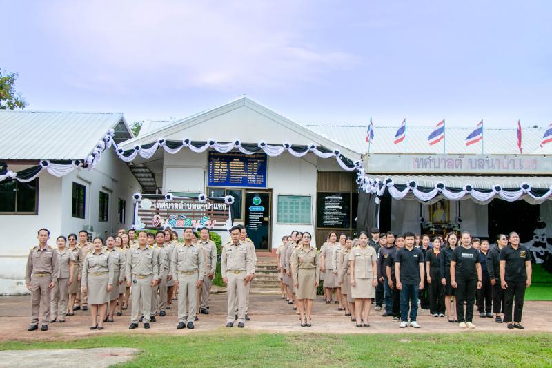 กิจกรรมเข้าแถวเคารพธงชาติ สวดมนต์ไหว้พระ ณ บริเวณหน้าสำนักงานเทศบาลตำบลนาป่าแซง