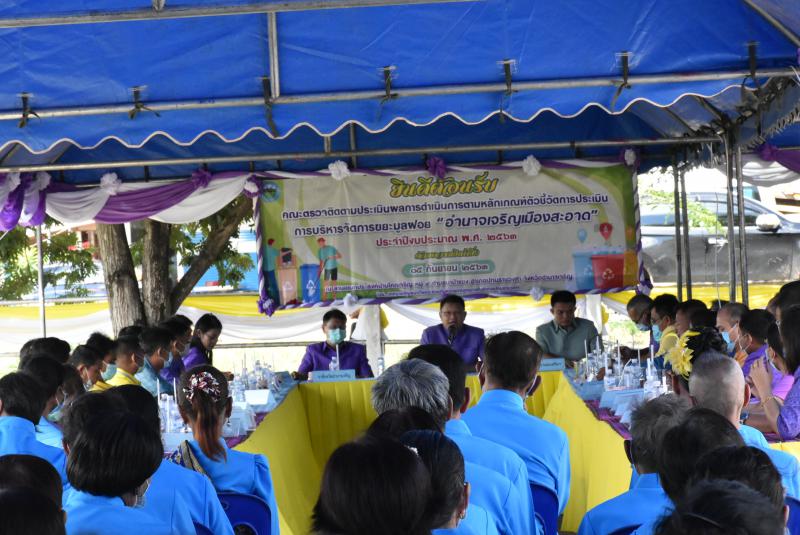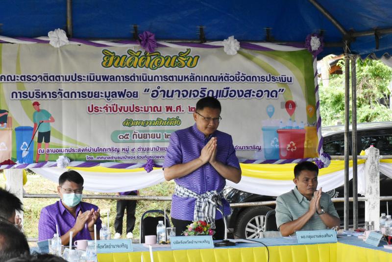 รายละเอียด : วันที่ ๑๕ กันยายน ๒๕๖๓ เวลา ๐๙.๐๐ น. เทศบาลตำบลนาป่าแซง ร่วมกับหน่วยงานราชการในอำเภอปทุมราชวงศา ได้ร่วมต้อนรับ นายศิริพันธ์ ขุ่มด้วง ปลัดจังหวัดอำนาจเจริญ พร้อมด้วยหัวหน้าส่วนราชการ คณะทำงาน จังหวัดอำนาจเจริญ ลงพื้นที่การตรวจติดตามประเมินผลการดำเนินการตามหลักเกณฑ์ตัวชี้วัดการประเมินการบริหารจัดการขยะมูลฝอย "อำนาจเจริญเมืองสะอาด" ประจำปีงบประมาณ พ.ศ. ๒๕๖๓ มีการตรวจคัดกรองเชื้อไวรัสโคโรนา ๒๐๑๙ ก่อนเข้าบริเวณงานจาก ทีม อสม. มีกิจกรรมฟ้อนรำต้อนรับจาก วิทยาลัยผู้สูงวัยไทนาป่าแซงบ่ถิ่มกัน นายปริโย โทบุตร ปลัดอำเภออาวุโส รักษาราชการนายอำเภอปทุมราชวงศา กล่าวต้อนรับ และรายงานฯ นายวชิระ มาประสม นายกเทศนนตรีตำบลนาป่าแซง กล่าวรายงานบริบทพื้นที่ตำบล นายชินวัตร จันทร์หอม กำนันตำบลนาป่าแซงกล่าวรายงานเพิ่มเติมเกี่ยวกับข้อมูลขยะในตำบล และ ผอ.กลุ่มงานส่งเสริมฯกล่าวบรรยาย นายศิริพันธ์ ขุ่มด้วง ปลัดจังหวัดอำนาจเจริญ บรรยายสรุปผลการดำเนินงานการบริหารจัดการขยะมูลฝอย "อำนาจเจริญเมืองสะอาด" ประจำปีงบประมาณ พ.ศ. ๒๕๖๓ และกล่าวให้กำลังใจในการทำงานทุกหน่วยงาน ทุกภาคส่วน มีหัวหน้าส่วนราชการ ท้องถิ่นอำเภอ สาธารณสุขอำเภอ นายกท้องถิ่นทุกแห่ง ข้าราชการ พนักงาน ลูกจ้าง ทต.นาป่าแซง ครูผู้ดูแลเด็ก อปพร. กลุ่มคัดแยกขยะที่ต้นทาง ม.๙ ท้องที่ ผู้นำชุมชน และมีการจัดบู๊ตร่วมจาก เครือข่าย พชอ.ปทุมราชวงศา ทต.ห้วย อบต.ลือ ทต.หนองข่า กลุ่มปลูกผักปลอดสาร กลุ่มทอผ้า ม.๔ และประชาชนในพื้นที่ร่วมกิจกรรมในครั้งนี้