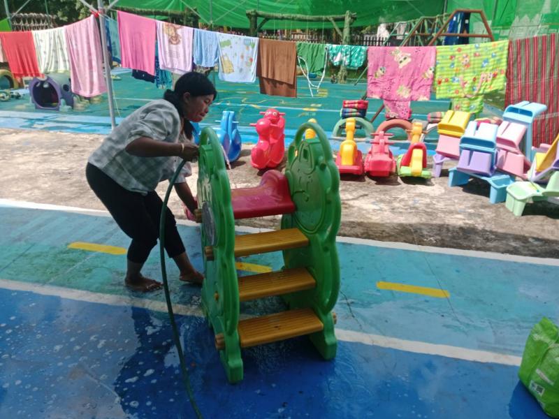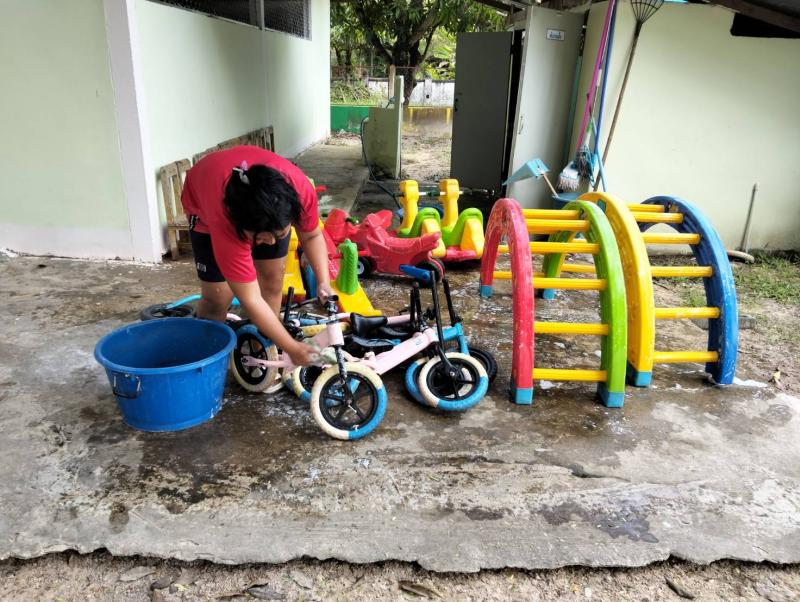 ทำความสะอาดศูนย์พัฒนาเด็กเล็ก เพื่อป้องกันในการป้องกันโรค มือเท้าปาก ในเด็ก
