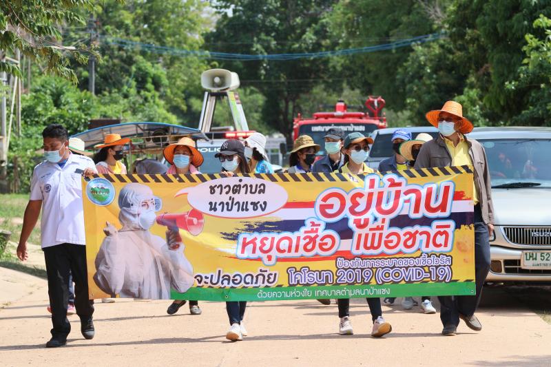 รายละเอียด : วันที่ 19 พฤษภาคม 2564 เวลา 09.00 น. เทศบาลตำบลนาป่าแซง โดย กองสาธารณสุขและสิ่งแวดล้อม นำโดย นายประจิณ สีทิม นายกเทศมนตรีตำบลนาป่าแซง คณะผู้บริหาร สมาชิกสภาเทศบาลฯ พร้อมข้าราชการ พนักงานจ้าง จ้างเหมา ร่วมกับ หน่วยงานปกครองอำเภอปทุมราชวงศา สภ.ปทุมราชวงศา รพ.สต.นาป่าแซง ผู้นำในชุมชน ร่วมกิจกรรมรณรงค์มาตรการเฝ้าระวัง ป้องกัน และควบคุมโรคติดเชื้อไวรัสโคโรนา 2019 (โควิด-19) แจกแผ่นพับ ประชาสัมพันธ์ เพื่อให้ความรู้แก่ประชาชนในตำบลนาป่าแซง ทั้ง 10 หมู่บ้านในตำบลนาป่าแซง