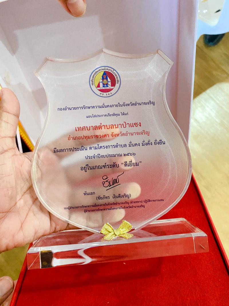 รายละเอียด : วันพฤหัสบดี ที่ 29 มิถุนายน 2566 เวลา 09.30 น. นายประจิณ สีทิม นายกเทศมนตรีตำบลนาป่าแซง รับมอบโล่ประกาศเกียรติคุณ การประเมินตามโครงการตำบลมั่นคง มั่งคั่ง ยั่งยืน ประจำปีงบประมาณ2566 อยู่ในเกณฑ์ระดับดีเยี่ยม จาก นายชนาส ชัชวาลวงศ์ ผู้ว่าราชการจังหวัดอำนาจเจริญ ณ ห้องประชุมพญานาครินทร์ ศูนย์ราชการจังหวัดอำนาจเจริญ งานประชาสัมพันธ์เทศบาลตำบลนาป่าแซง
