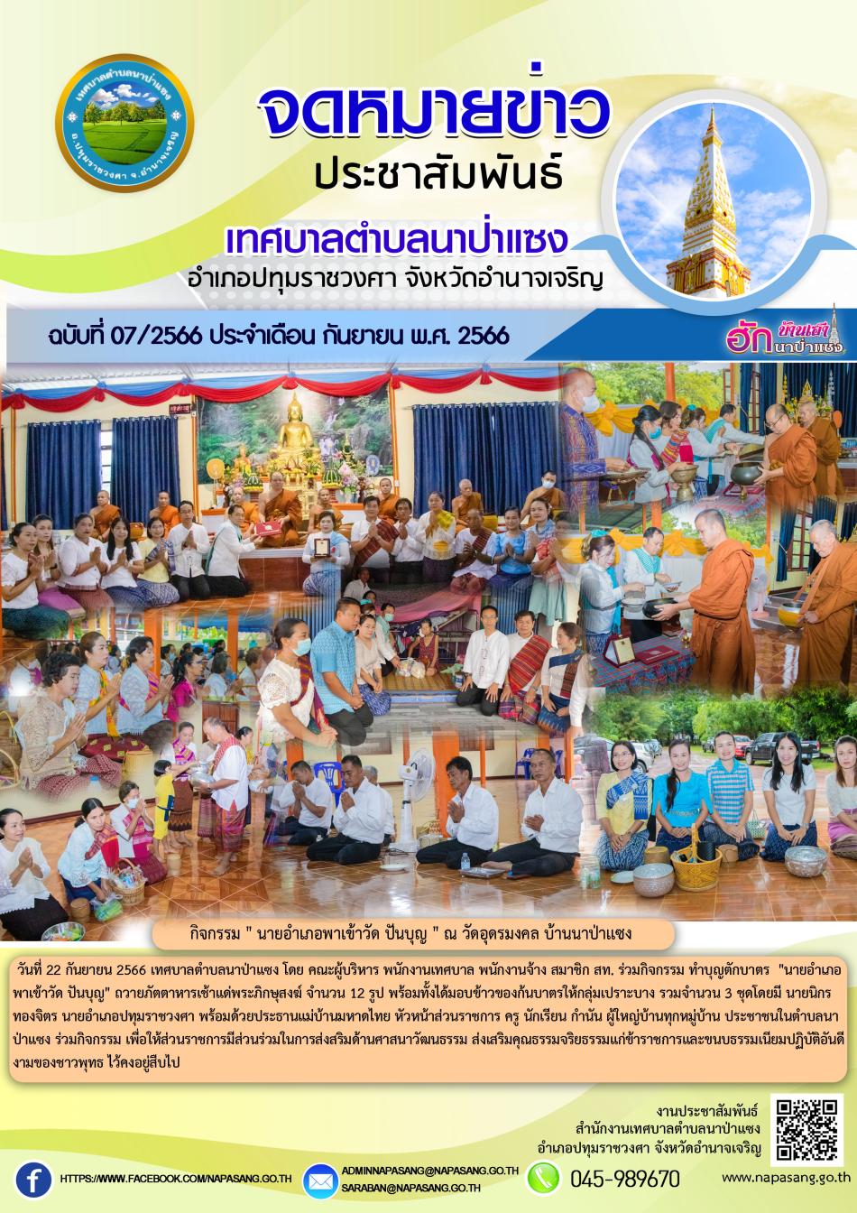 ประชาสัมพันธ์จดหมายข่าวเทศบาลตำบลนาป่าแซง ฉบับที่07/2566 ประจำเดือน กันยายน พ.ศ. 2566 [10 ตุลาคม 2566]