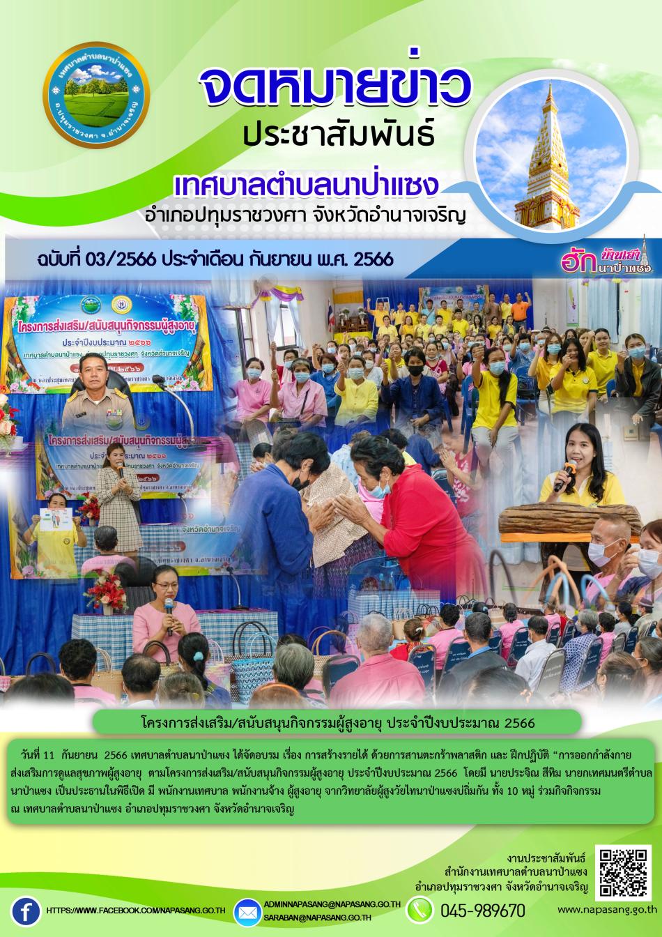 ประชาสัมพันธ์จดหมายข่าวเทศบาลตำบลนาป่าแซง ฉบับที่ 03/2566 ประจำเดือน สิงหาคม พ.ศ. 2566 [5 กันยายน 2566]