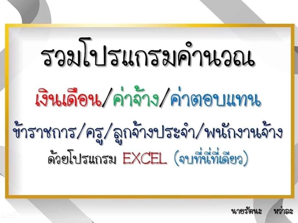 ชื่อเรื่อง : โปรแกรมและสูตรคำนวณเงินเดือน/ค่าจ้าง/ค่าตอบแทนต่าง ๆ ด้วยโปรแกรม Excel