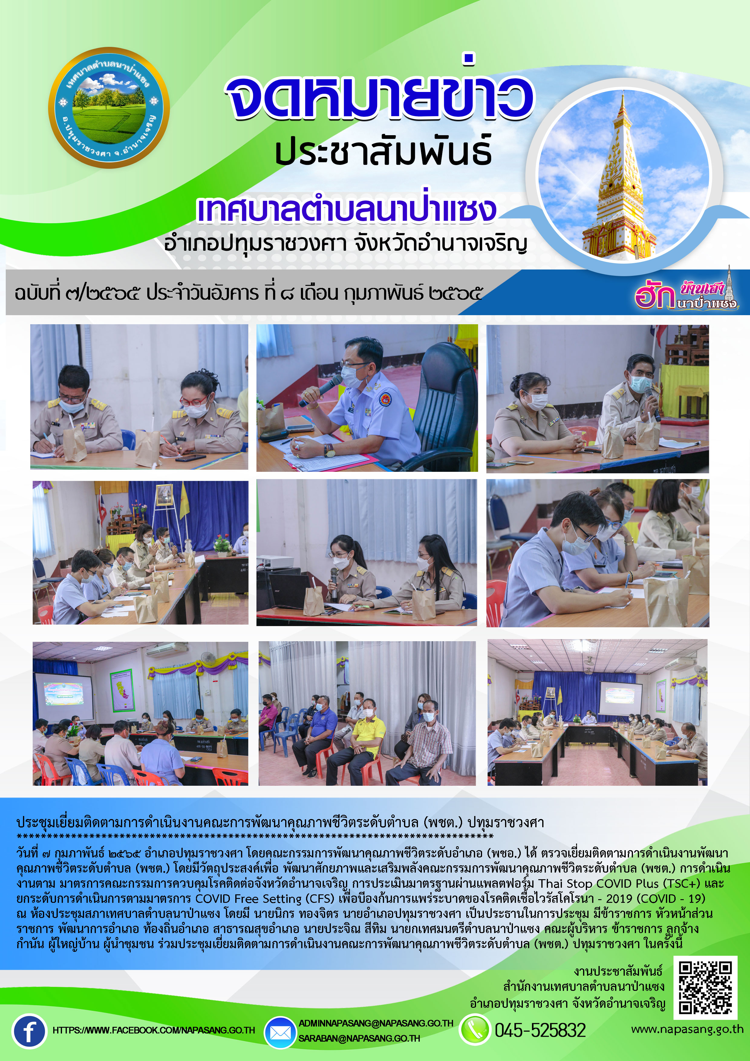 จดหมายข่าวประชาสัมพันธ์ เทศบาลตำบลนาป่าแซง ฉบับที่ ๗/๒๕๖๕ ประจำวันอังคาร ที่ ๘ เดือน กุมภาพันธ์ ๒๕๖๕
