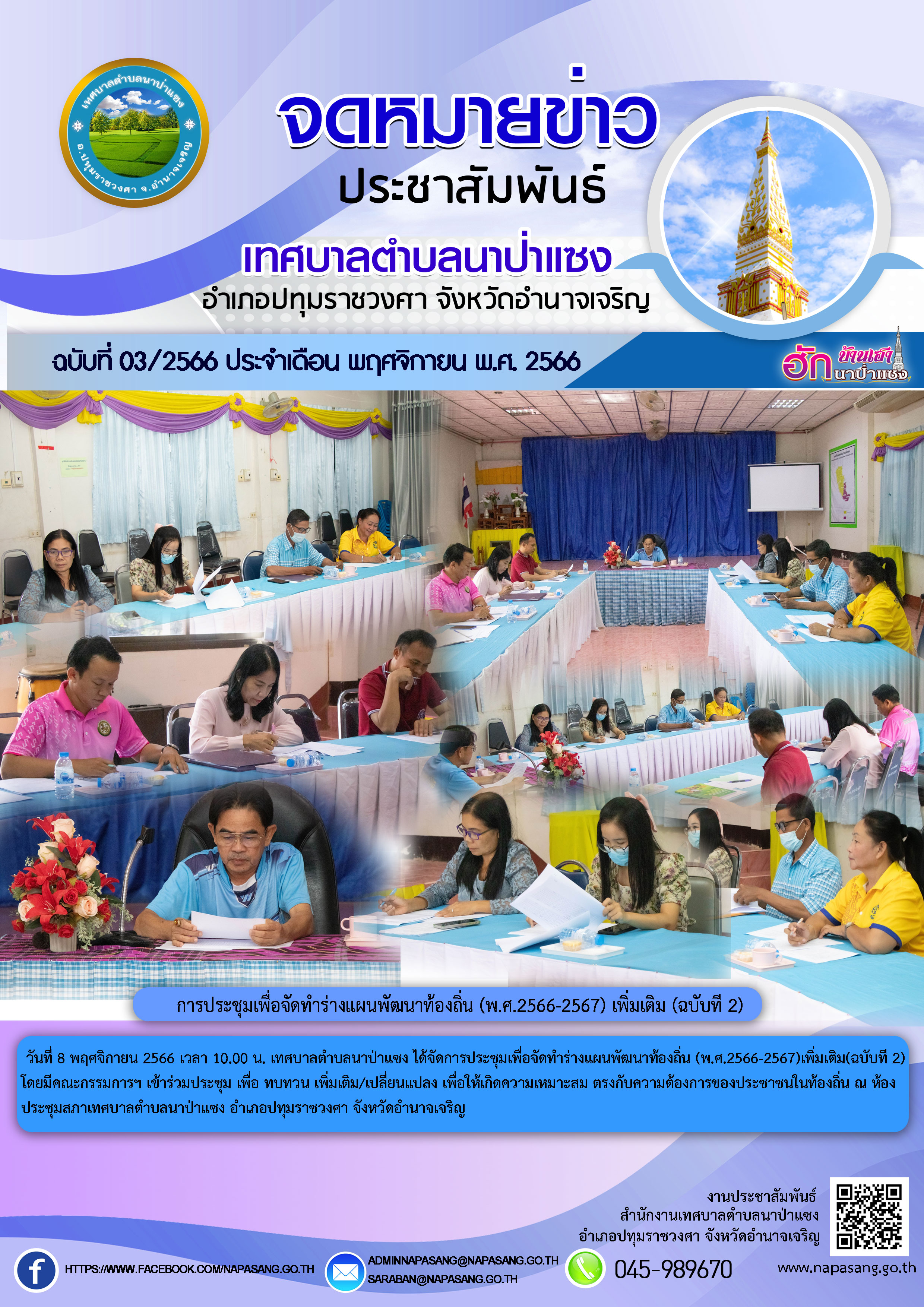 ประชาสัมพันธ์จดหมายข่าวเทศบาลตำบลนาป่าแซง ฉบับที่ 03/2566 ประจำเดือน พฤศจิกายน พ.ศ. 2566