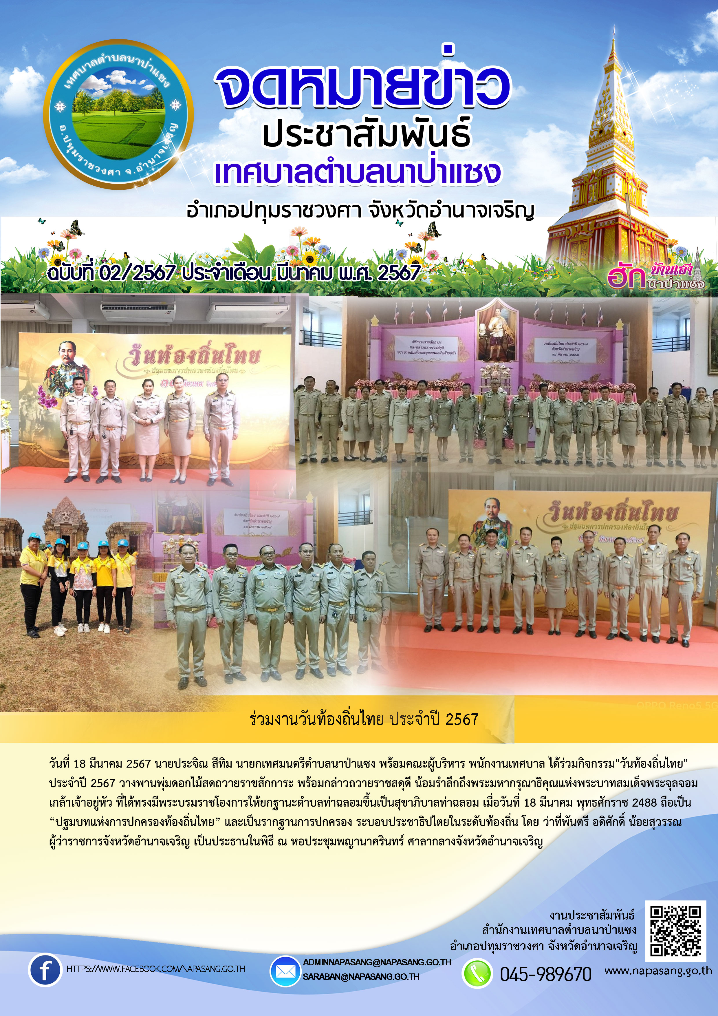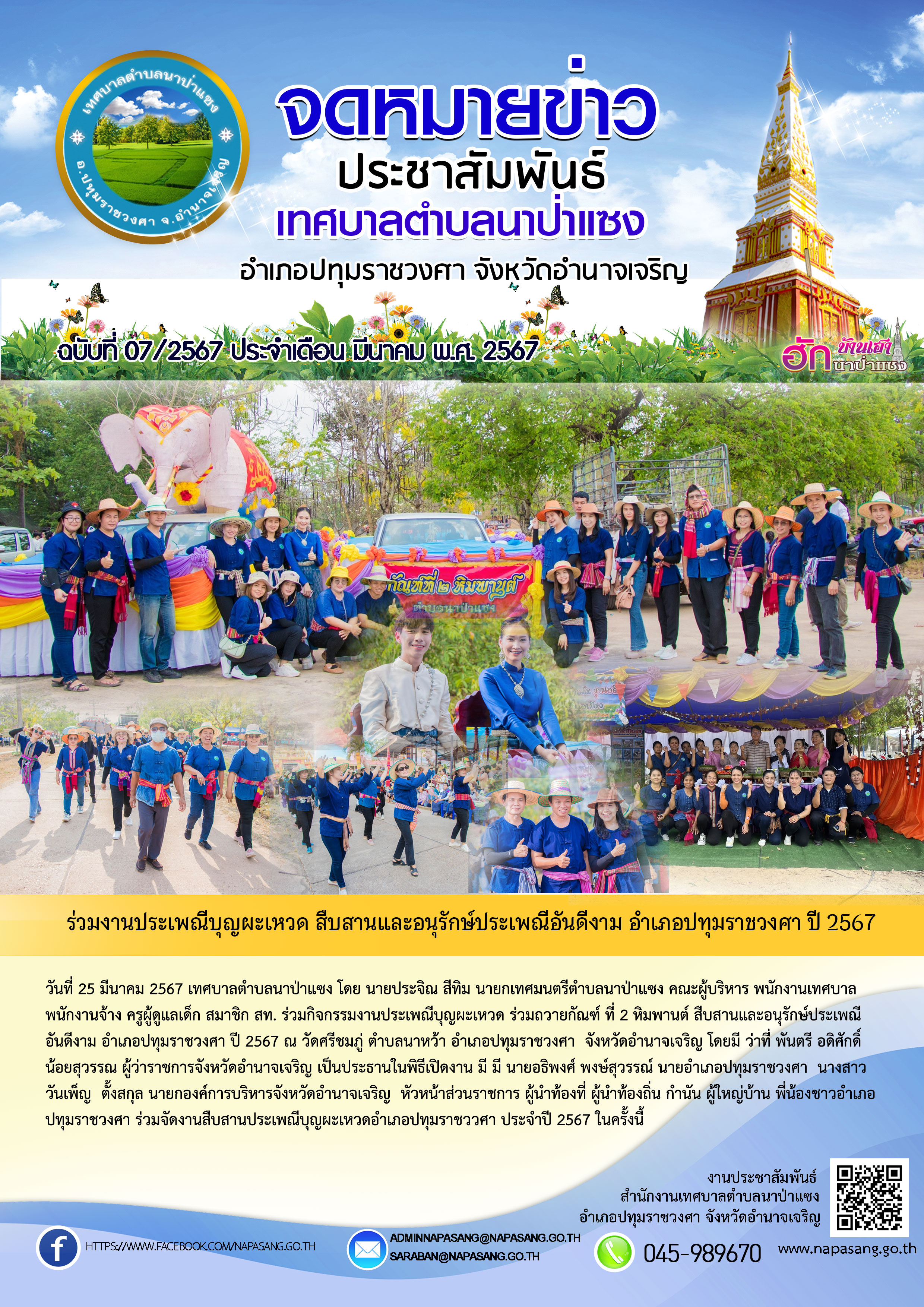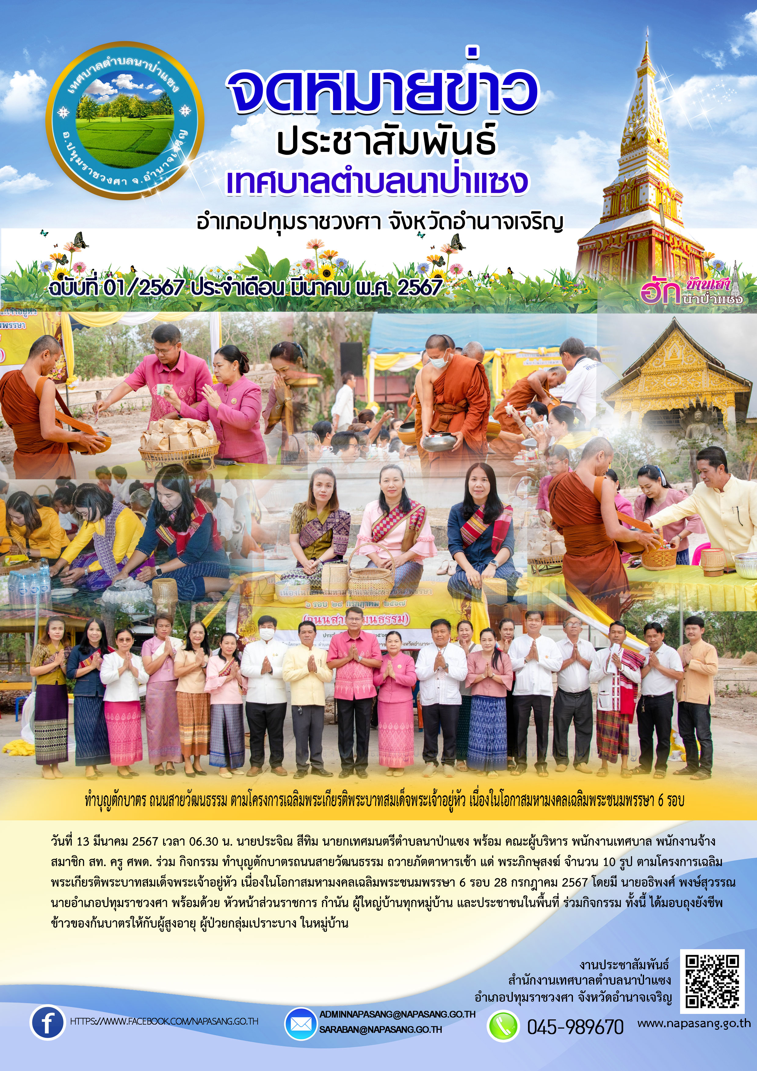 ประชาสัมพันธ์จดหมายข่าวเทศบาลตำบลนาป่าแซง ฉบับที่ 01-10 ประจำเดือน มีนาคม พ.ศ. 2567