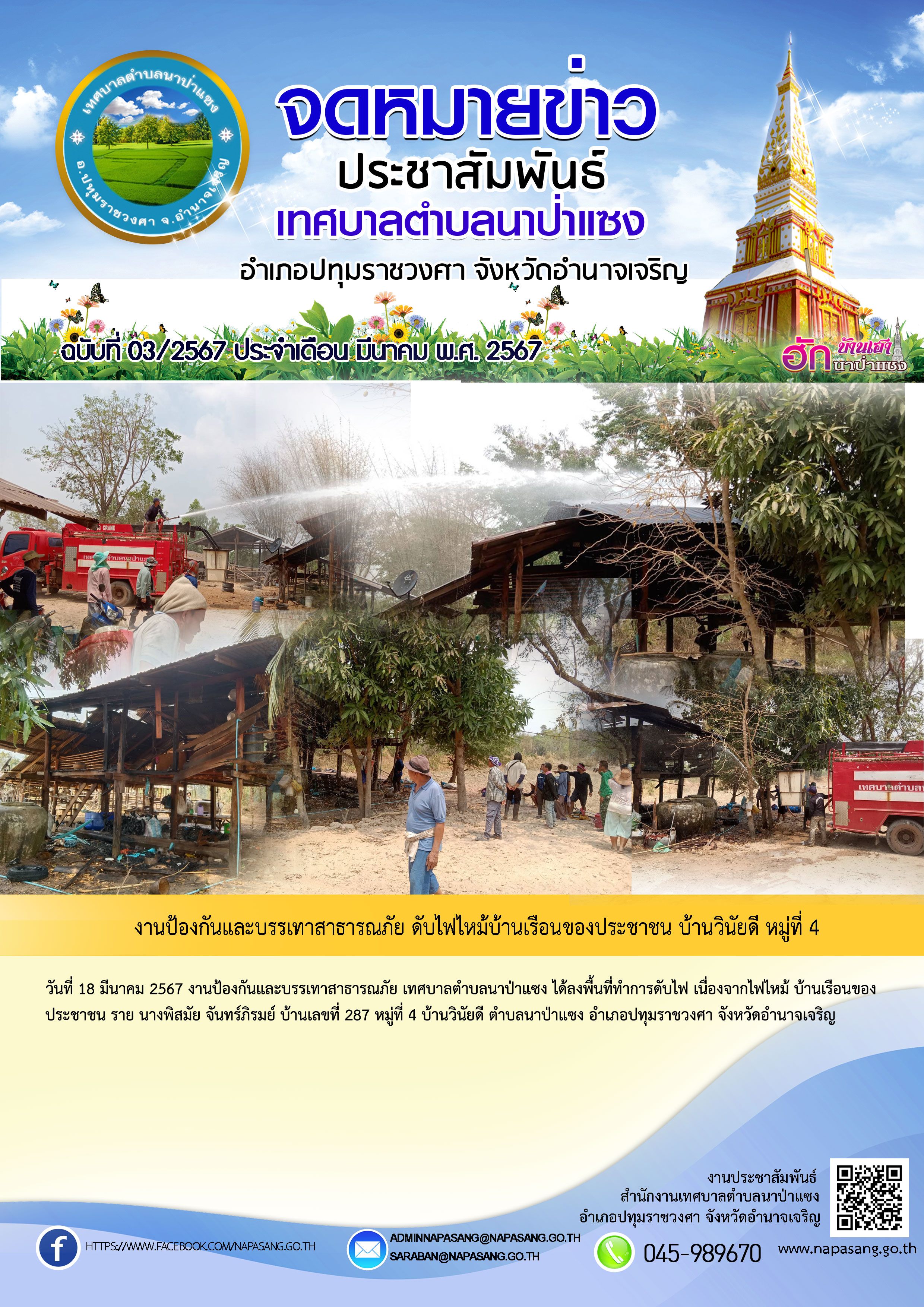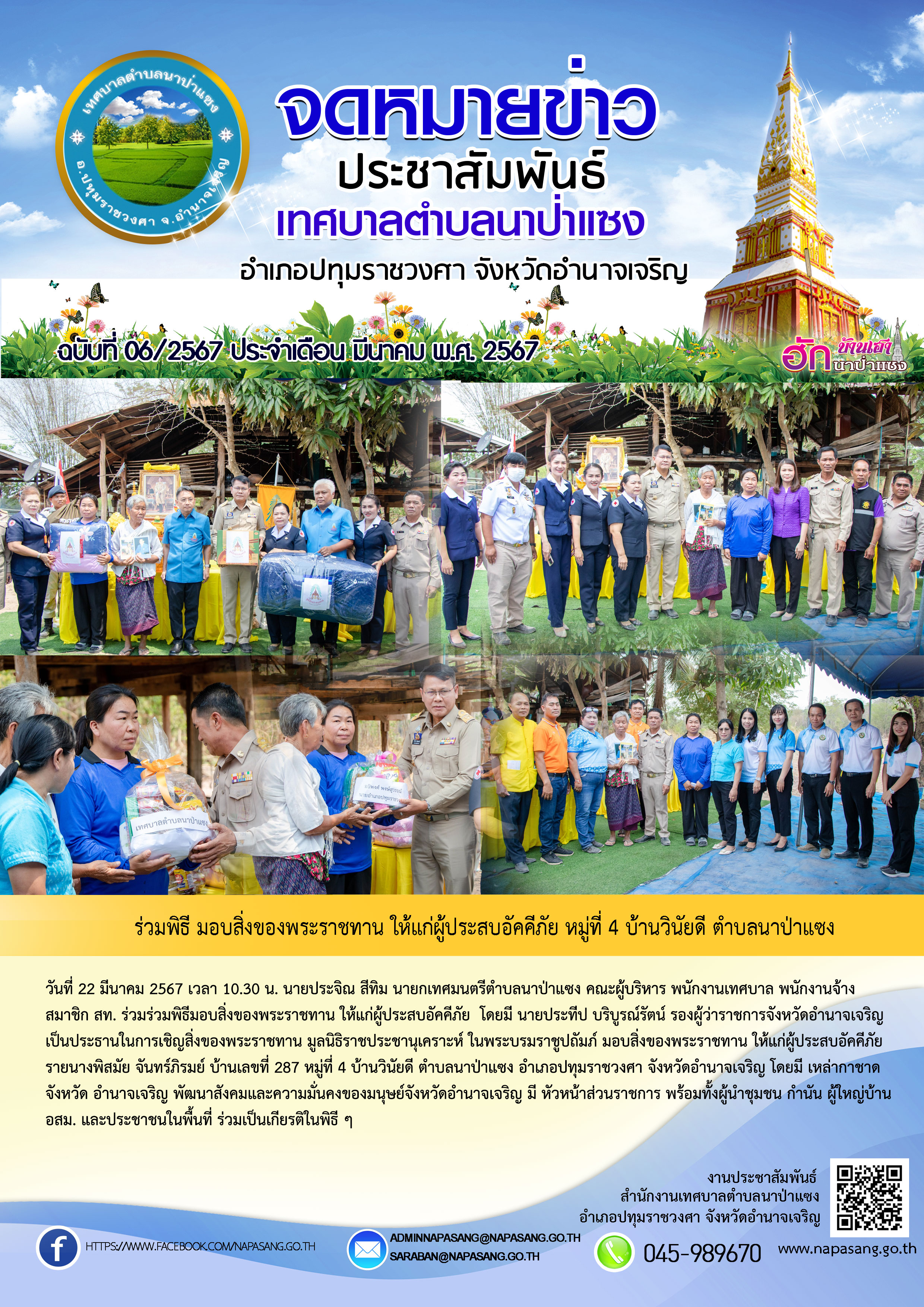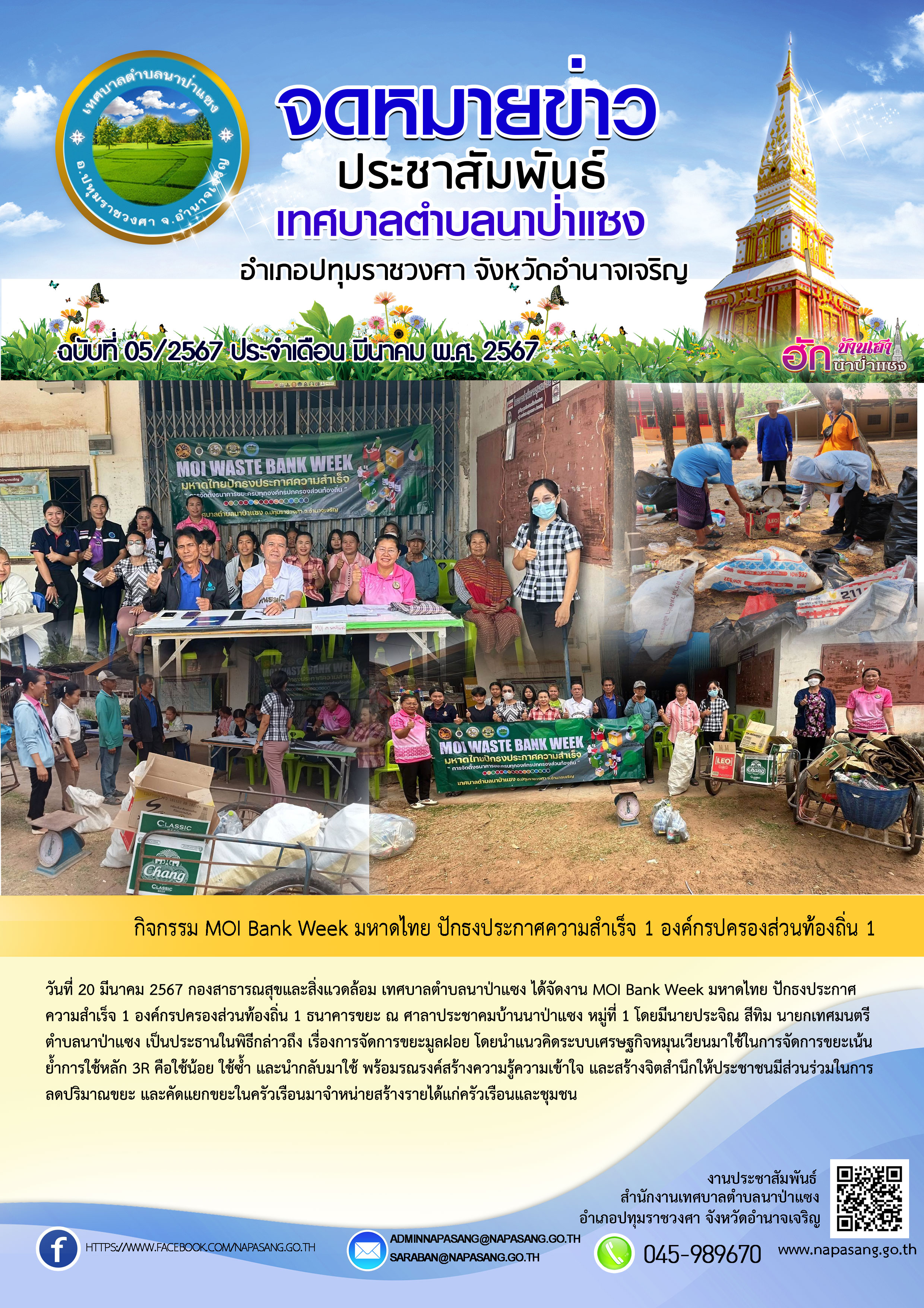 ประชาสัมพันธ์จดหมายข่าวเทศบาลตำบลนาป่าแซง ฉบับที่ 01-10 ประจำเดือน มีนาคม พ.ศ. 2567