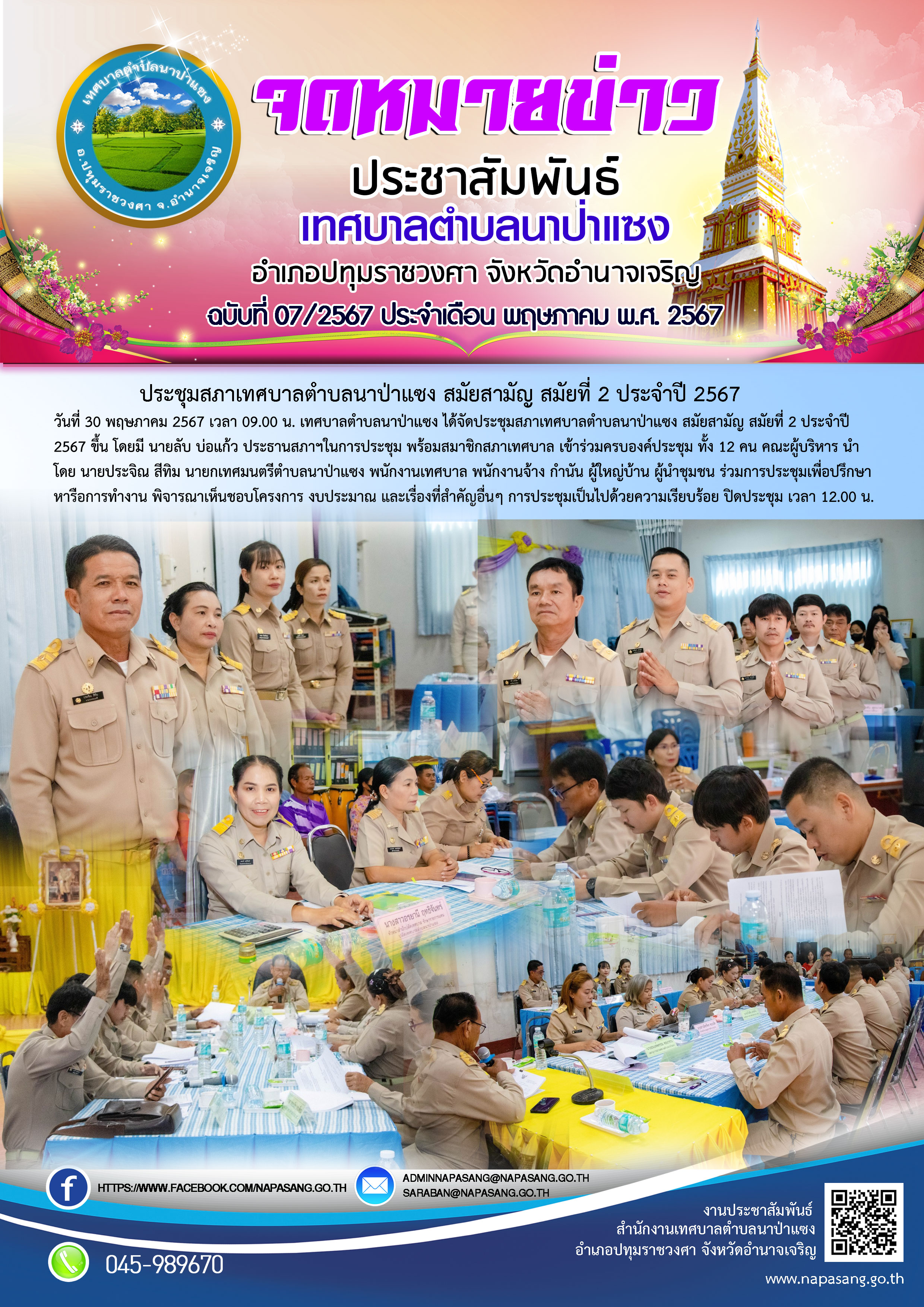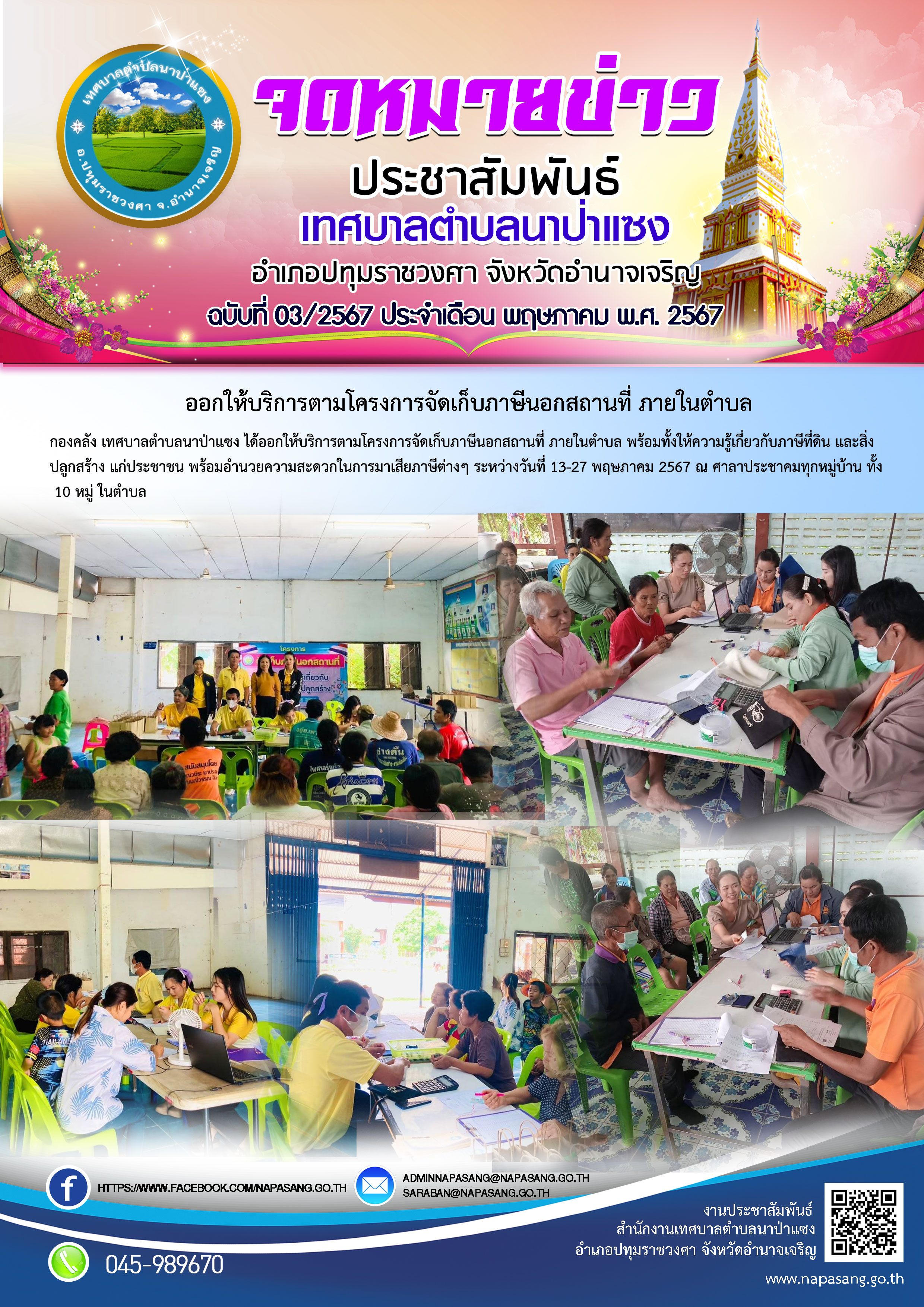 จดหมายข่าวประชาสัมพันธ์เทศบาลตำบลนาป่าแซง ฉบับที่ 01-08/2567 ประจำเดือน พฤษภาคม พ.ศ. 2567