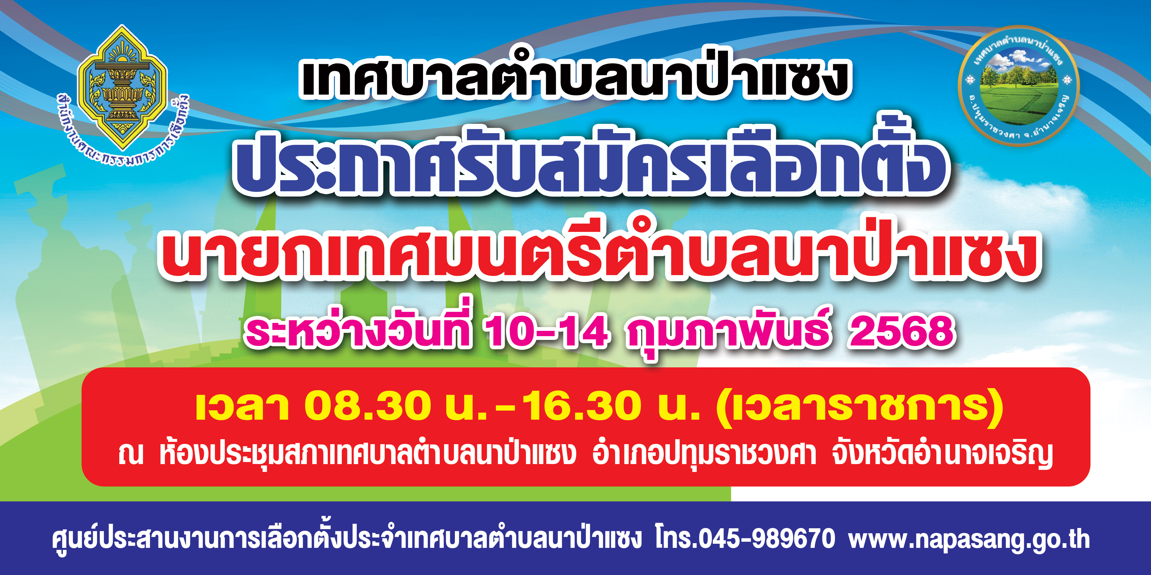 ชื่อเรื่อง : เทศบาลตำบลนาป่าแซง ประกาศรับสมัครเลือกตั้ง นายกเทศมนตรีตำบลนาป่าแซง