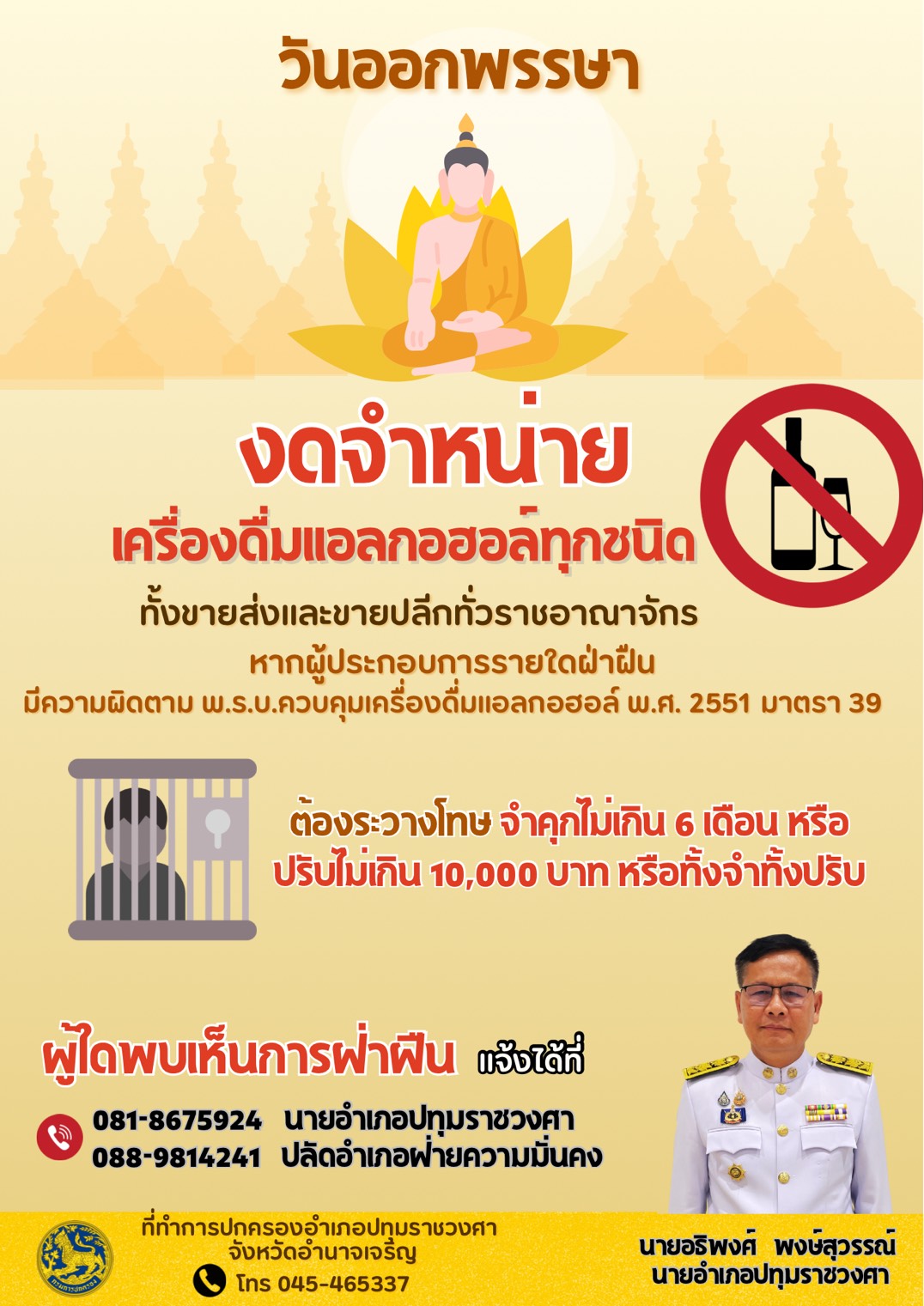 ชื่อเรื่อง : เทศบาลตำบลนาป่าแซง ประชาสัมพันธ์วันออกพรรษาห้ามขายเครื่องดื่มแอลกอฮอล์ทุกชนิดทั่วราชอาณาจักร