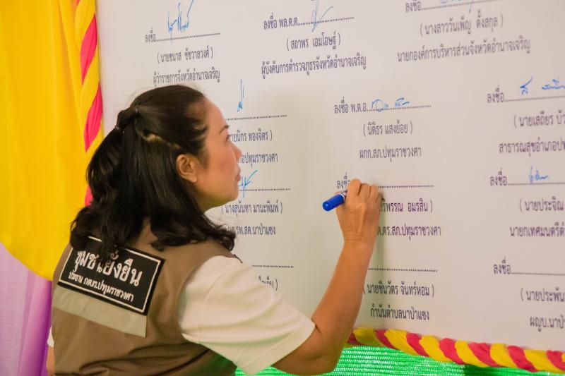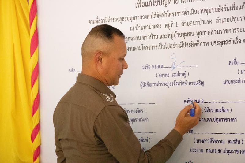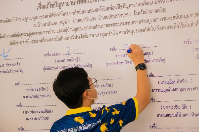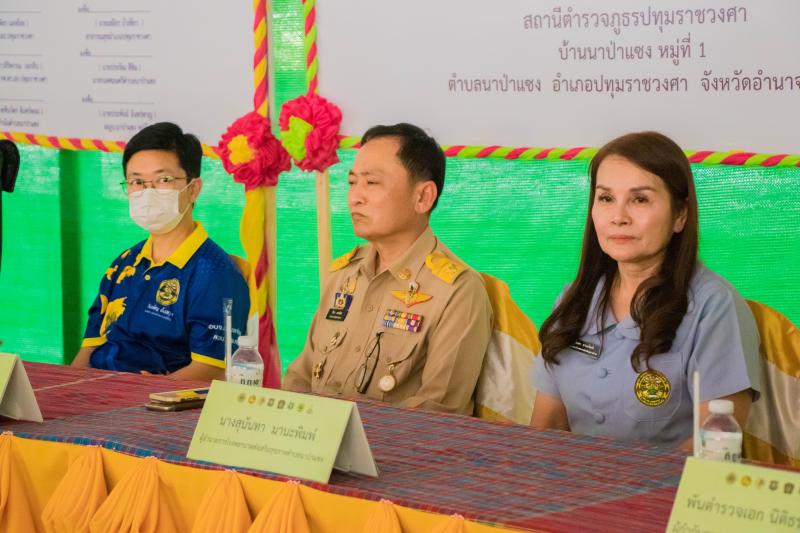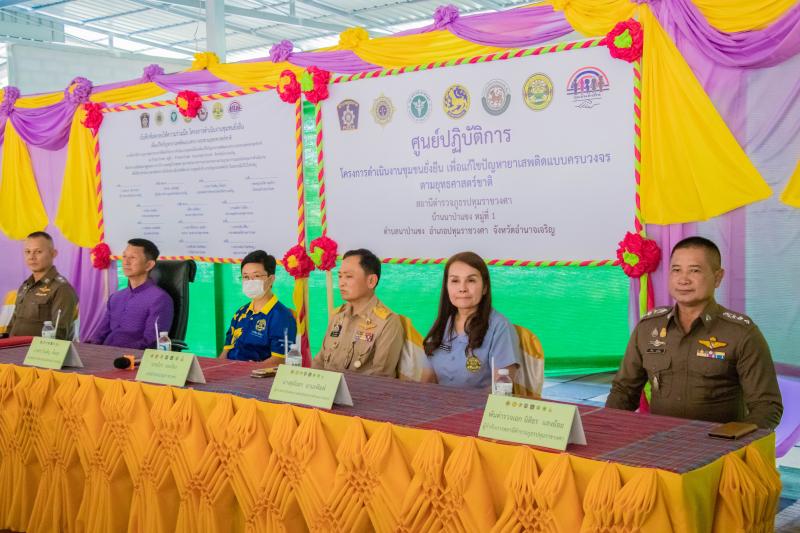 รายละเอียด : วันที่ 4 มีนาคม 2566 เวลา 14.00 น. นายชนาส ชัชวาลวงศ์ ผู้ว่าราชการจังหวัดอำนาจเจริญ เป็นประธานในพิธีเปิดโครงการดำเนินงานชุมชนยั่งยืนเพื่อแก้ไขปัญหายาเสพติดแบบครบวงจร ตามยุทธศาสตร์ชาติ ประจำปีงบประมาณ 2566 พร้อมด้วยนางจินตนา ชัชวาลวงศ์ นายกเหล่ากาชาดจังหวัดอำนาจเจริญ โดย นายนิกร ทองจิตร นายอำเภอปทุมราชวงศา นางดาราการณ์ ทองจิตร ที่ปรึกษาเหล่ากาชาดจังหวัดอำนาจเจริญ ให้การต้อนรับ พร้อมหัวหน้าส่วนราชการระดับอำเภอ นายประจิณ สีทิม นายกเทศมนตรีตำบลนาป่าแซง มอบหมายให้ นางอนงค์ โพธารินทร์ รองนายกฯ ข้าราชการ พนักงานจ้าง สมาชิก สท. กำนัน ผู้ใหญ่บ้านและประชาชนในพื้นที่ ร่วมต้อนรับ ในการนี้ได้เยี่ยมชมผลิตภัณฑ์ สินค้าในท้องถิ่น ณ วัดอุดรมงคล บ้านนาป่าแซง หมู่ที่ 1 ตำบลนาป่าแซง อำเภอปทุมราชวงศา จังหวัดอำนาจเจริญ
