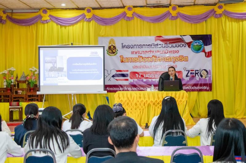 รายละเอียด : วันที่ 17 มกราคม 2568 เวลา 08.30 น. เทศบาลตำบลนาป่าแซงร่วมกับ สำนักงาน ป.ป.ช. อำนาจเจริญ ได้จัดโครงการมีส่วนร่วมของเทศบาลตำบลนาป่าแซงในการป้องกันการทุจริต ประจำปีงบประมาณ 2568 โดยมี นายประจิณ สีทิม นายกเทศมนตรีตำบลนาป่าแซง เป็นประธานเปิดโครงการฯ มี นางสาวณัชณัญ สมสะอาด เจ้าพนักงานป้องกันการทุจริตชำนาญการ และทีมวิทยากรจาก สำนักงาน ป.ป.ช. อำนาจเจริญ มาให้ความรู้ กับ คณะผู้บรหาร สมาชิก สท. พนักงานเทศบาล พนักงานจ้าง ครู ศพด. ณ ห้องประชุมสภาเทศบาลตำบลนาป่าแซง อำเภอปทุมราชวงศา จังหวัดอำนาจเจริญ