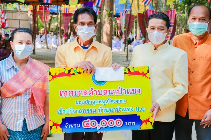 รายละเอียด : วันที่ ๑๙ ตุลาคม ๒๕๖๕ เวลา ๐๘.๐๐ น. นายประจิณ สีทิม นายกเทศมนตรีตำบลนาป่าแซง คณะผู้บริหาร สมาชิก สท. ข้าราชการ พนักงาน ลูกจ้าง เทศบาลตำบลนาป่าแซง ร่วม งานปริวาสกรรม ทำบุญตักบาตร ฟังพระธรรมเทศนา ตอนเช้า และมอบเงินอุดหนุน โครงการเข้าปาริวาสกรรมจำนวน ๔๐,๐๐๐ บาท ให้ นายประพันธ์ จันทร์หาญ ผู้ใหญ่บ้าน มัคฆทายก ร่วมรับมอบเงิน เพื่อสนับสนุนกิจกรรม ทนุบำรุงทางศาสนา มีผู้นำชุมชน ประชาชนบ้านนาป่าแซง ในตำบลและใกล้เคียงร่วม งานปริวาสกรรม ณ วัดอุดรมงคล บ้านนาป่าแซง อำเภอปทุมราชวงศา จังหวัดอำนาจเจริญ เพื่อสืบสานประเพณีวัฒนธรรมอันดีงามให้คงอยู่สืบไป