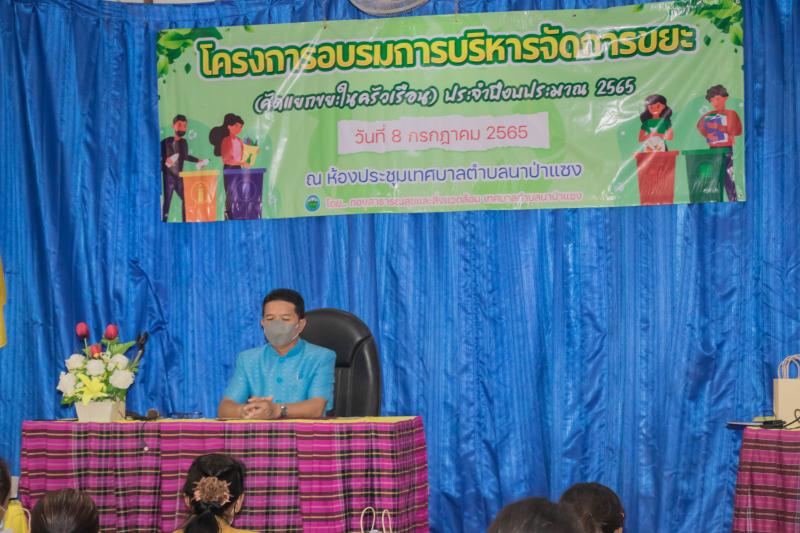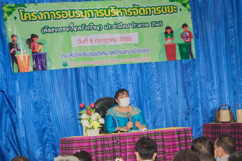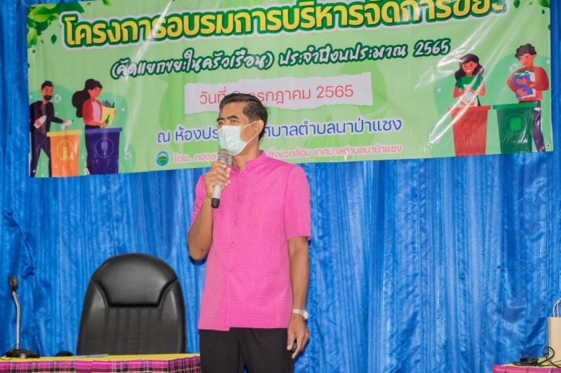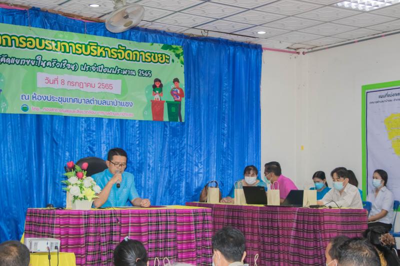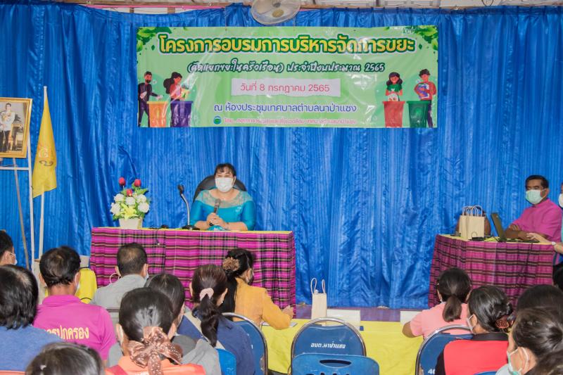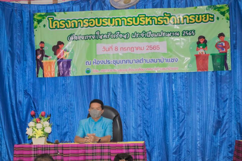 รายละเอียด : วันที่ 8 กรกฎาคม 2565 เทศบาลตำบลนาป่าแซง กองสาธารณสุขและสิ่งแวดล้อม ได้จัดโครงการอบรมการบริหารจัดการขยะ (คัดแยกขยะในครัวเรือน) ประจำปีงบประมาณ 2565 ขึ้น โดย นายประจิณ สีทิม นายกเทศมนตรีตำบลนาป่าแซง เป็นประธานในพิธีเปิด ได้รับความร่วมมือจากหัวหน้าส่วนราชการในอำเภอ น.ส.พรรณิภา มณีเนตร ท้องถิ่นอำเภอฯ นายเสถียร บัวเขียว สาธารณสุขอำเภอ เป็นวิทยากรให้ความรู้แก่ประชาชนผู้เข้าอบรมในการคัดแยกขยะ การกำจัดขยะในชุมชนให้ถูกต้องครอบคลุม ทั้ง 10 หมู่บ้านในตำบลนาป่าแซง และเป็นการสนองนโนบายของรัฐบาลในการบริหารจัดการขยะมูลฝอยในชุมชน "จังหวัดอำนาจเจริญเมืองสะอาด" มี สมาชิก สท. ผู้ใหญ่บ้าน ผู้นำชุมชน อสม. ประชาชน ทุกหมู่บ้าน เข้าร่วมอบรมในครั้งนี้