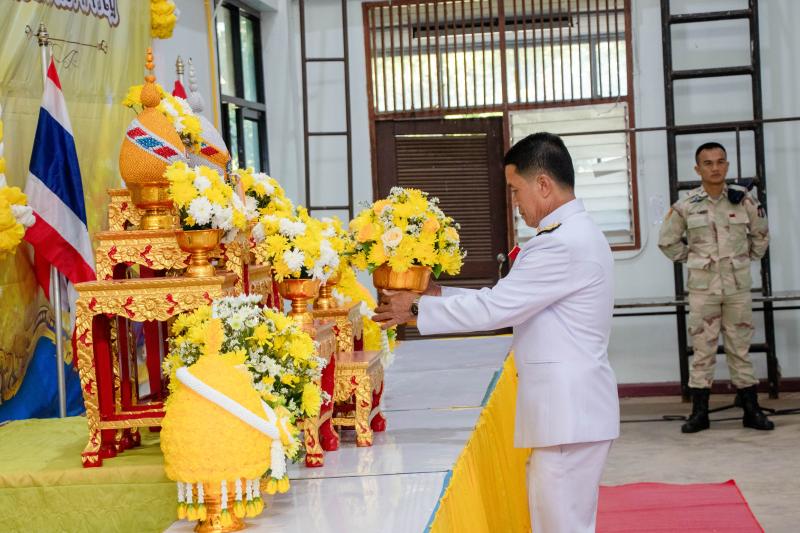 พิธีวางพานพุ่มดอกไม้ เนื่องในวันคล้ายวันพระบรมราชสมภพพระบาทสมเด็จพระบรมชนกาธิเบศรมหาภูมิพลอดุลยเดชมหาราช บรมนาถบพิตร วันชาติ และวันพ่อแห่งชาติ 5 ธันวาคม 2566