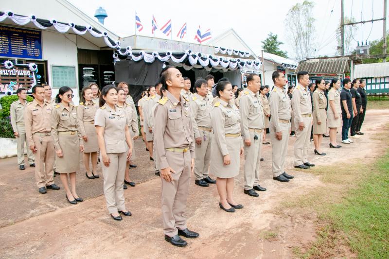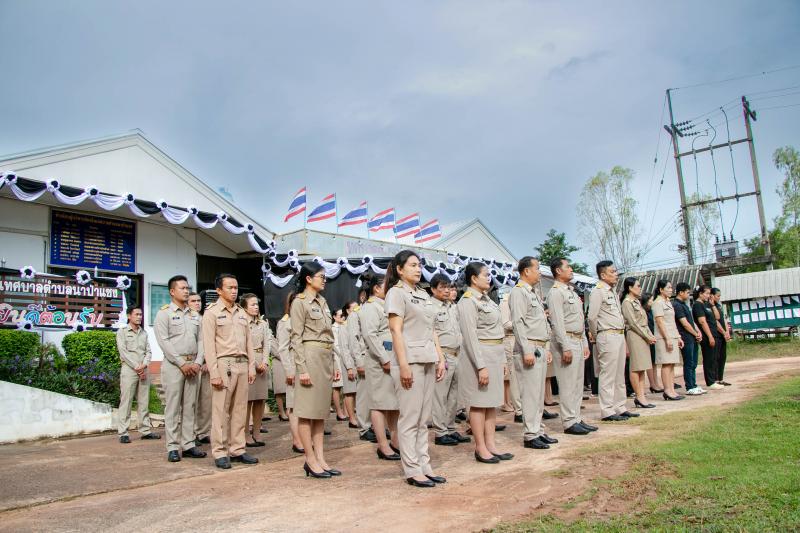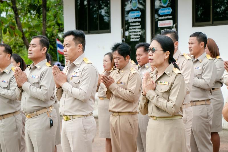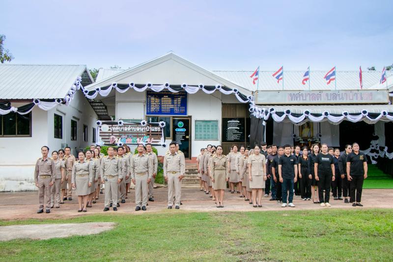 กิจกรรมเข้าแถวเคารพธงชาติ สวดมนต์ไหว้พระ ณ บริเวณหน้าสำนักงานเทศบาลตำบลนาป่าแซง