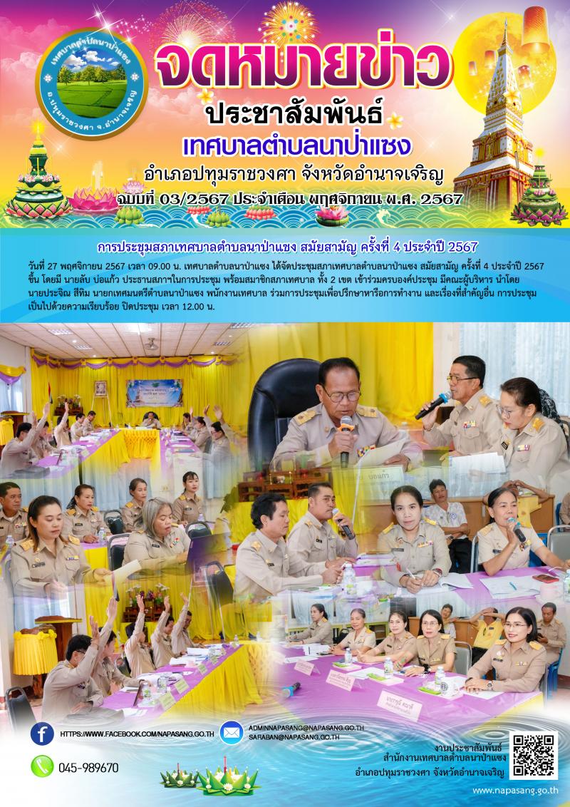 จดหมายข่าวประชาสัมพันธ์เทศบาลตำบลนาป่าแซง ฉบับที่ 01-04 ประจำเดือน พฤศจิกายน พ.ศ.2567