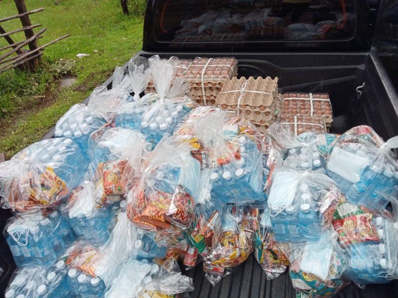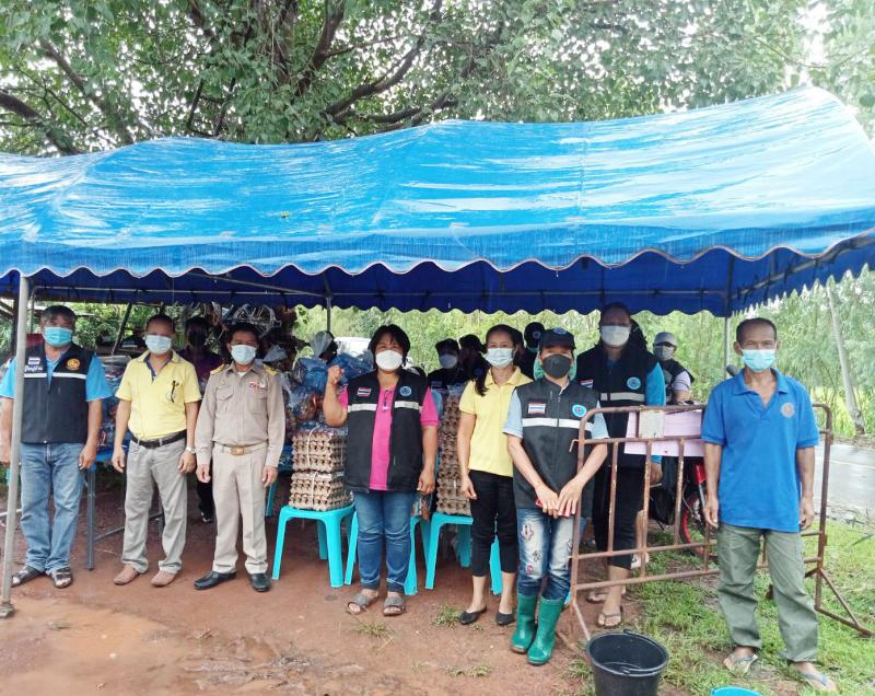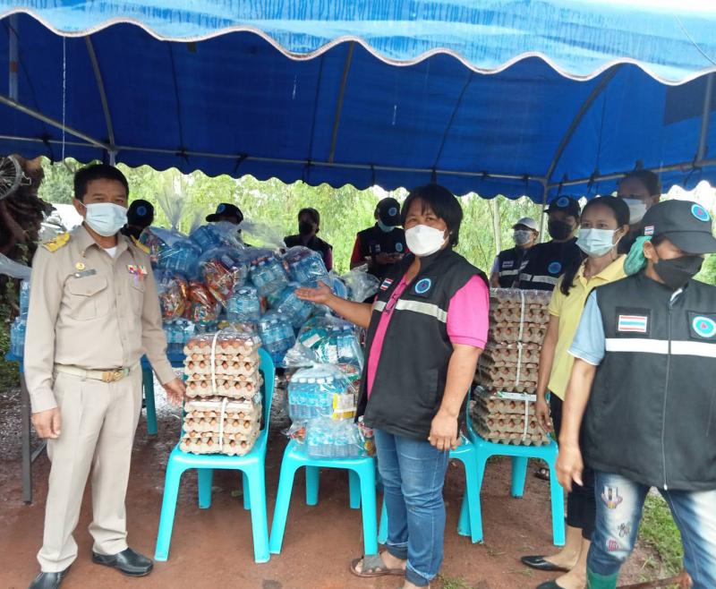 นายประจิณ สีทิม นายกเทศมนตรีตำบลนาป่าแซง พร้อมคณะผู้บริหาร มอบถุงยังชีพผู้กักตัว บ้านสามัคคี ม.2