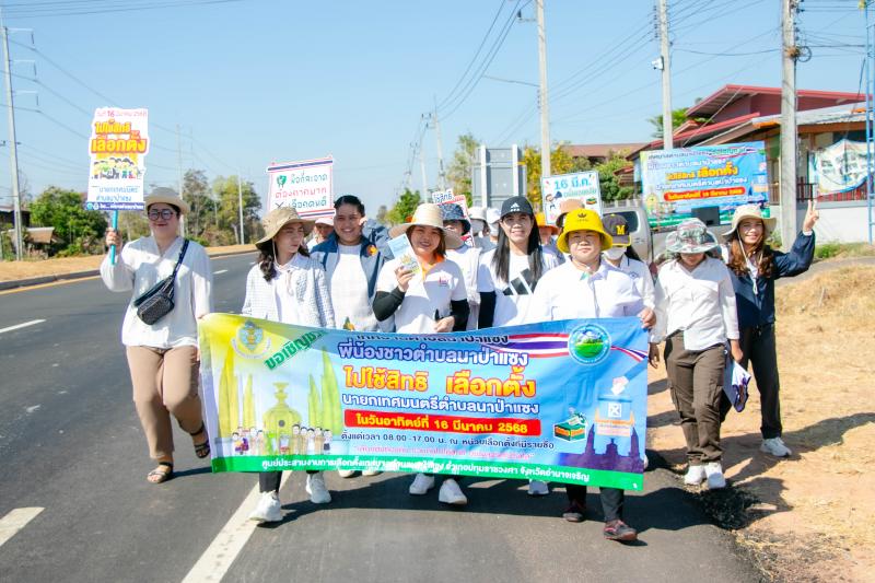 รายละเอียด : วันที่ 27 กุมภาพันธ์ 2568 เวลา 09.00 น. ศูนย์ประสานงานงานเลือกตั้งเทศบาลตำบลนาป่าแซงจัดกิจกรรมรณรงค์ประชาสัมพันธ์การเลือกตั้งนายกเทศมนตรีตำบลนาป่าแซง เพื่อเป็นการแสดงถึงการมีส่วนร่วมในระบอบประชาธิปไตย และรณรงค์เผยแพร่ประชาสัมพันธ์เชิญชวนให้ประชาชนได้ร่วมกันใช้สิทธิใช้เสียงเลือกตั้ง โดยการเดินรณรงค์ประชาสัมพันธ์ เคาะประตูบ้าน