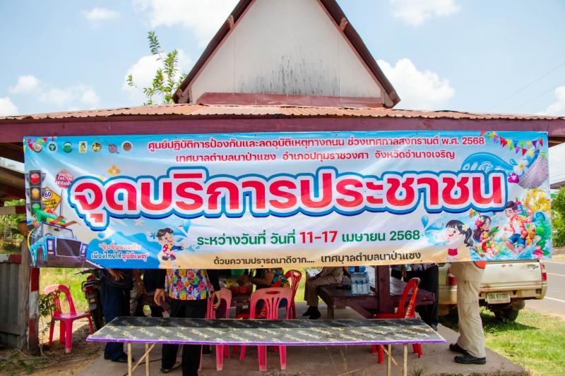 ศูนย์ป้องกันและลดอุบัติเหตุทางถนน เทศบาลตำบลนาป่าแซง ตั้งจุดให้บริการประชาชน 7 วันอันตราย ระหว่างวันที่ 11- 17 เมษายน 2568