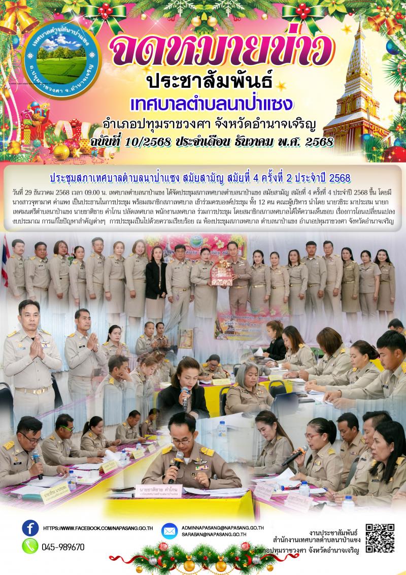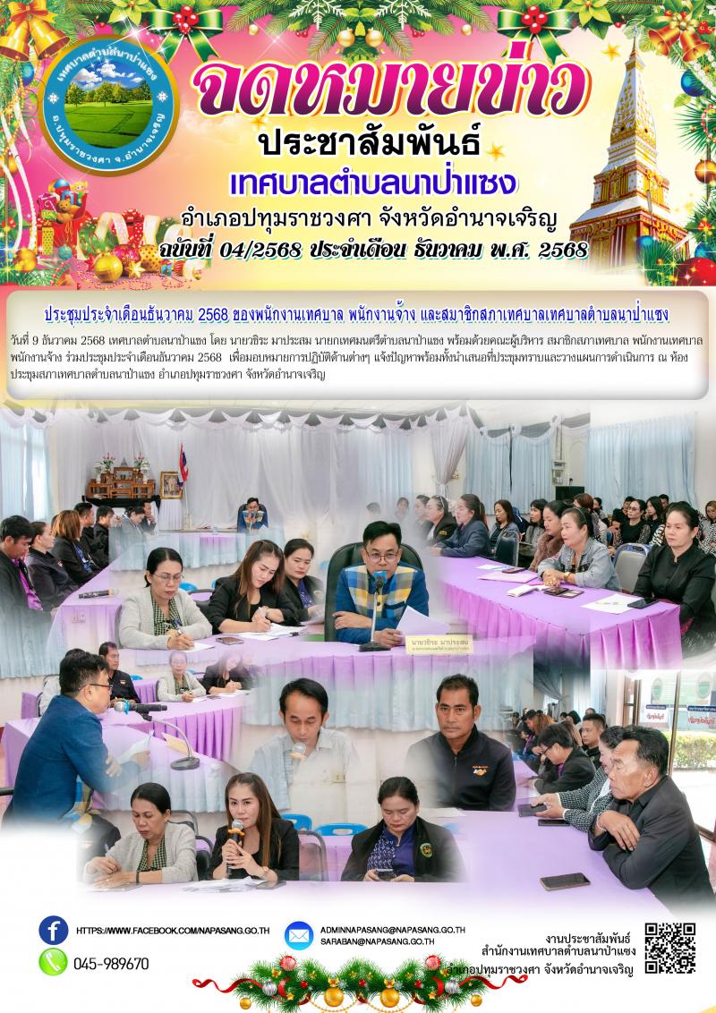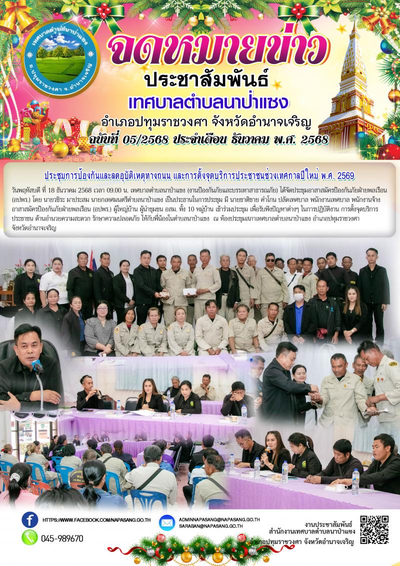 จดหมายข่าวประชาสัมพันธ์เทศบาลตำบลนาป่าแซง ฉบับที่ 1-12 ประจำเดือน ธันวาคม พ.ศ.2568
