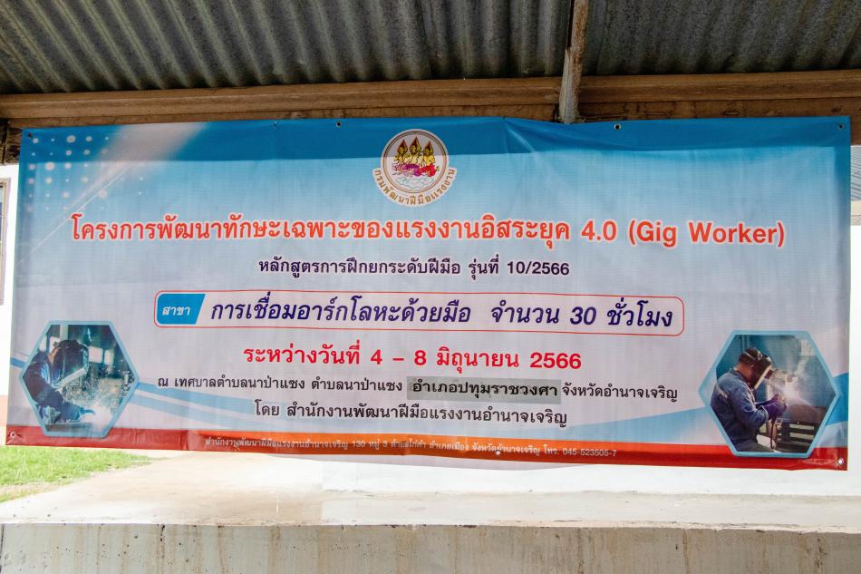 รายละเอียด : โครงการพัฒนทักษะเฉพาะของแรงงานอิสระยุค 4.0 (Gig Worker) หลักสูตรการฝึกยกระดับฝีมือ รุ่นที่ 10/2566 สาขาการเชื่อมอาร์กด้วยมือ จำนวน 30 ชั่วโมง ระหว่างวันที่ 4-8 มิถุนายน 2566 ณ สำนักงานเทศบาลตำบลนาป่าแซง โดย สำนักงานพัฒนาฝีมือแรงงานอำนาจเจริญ