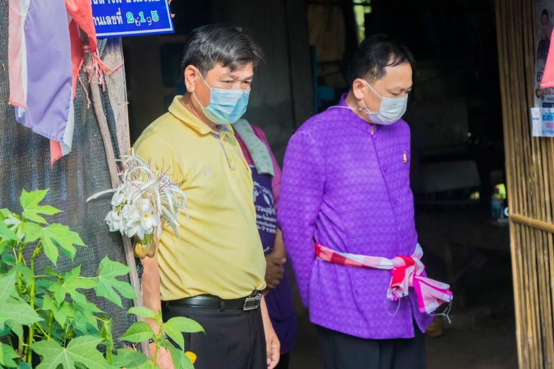 นายนิวัติ น้อยผาง รองอธิบดีกรมการพัฒนาชุมชน พร้อมคณะ ปลัดจังหวัดอำนาจเจริญ ลงพื้นที่ ให้กำลังใจครัวเรือน นางลำไพ ชนะเพีย ม.1