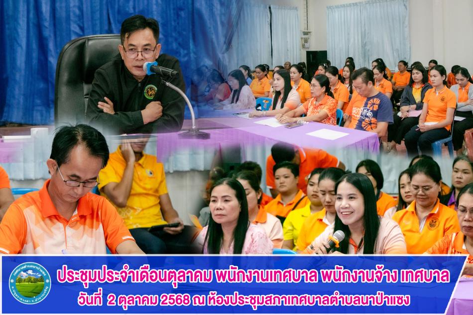ประชุมพนักงานเทศบาล พนักงานจ้าง เทศบาลตำบลนาป่าแซง ประจำเดือน ตุลาคม 2568 [2 ตุลาคม 2568]