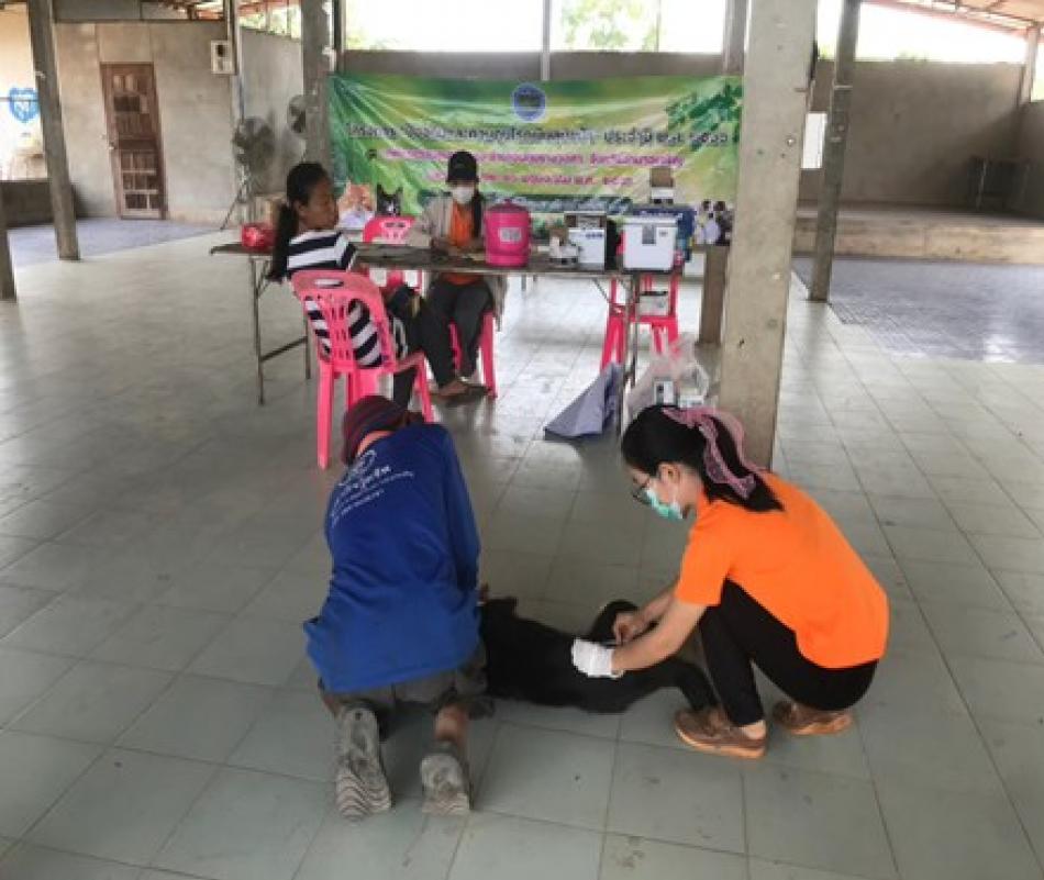 อกให้บริการฉีดวัคซีนป้องกันโรคพิษสุนัขบ้าให้กับสุนัขและแมวในเขตพื้นที่ตำบลนาป่าแซง [22 พฤษภาคม 2566]