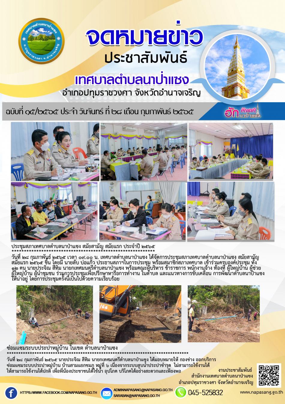 จดหมายข่าวประชาสัมพันธ์ เทศบาลตำบลนาป่าแซง ฉบับที่ ๑๕/๒๕๖๕ ประจำ วันอังคาร ที่ ๒๘ เดือน กุมภาพันธ์ ๒๕๖๕ [28 กุมภาพันธ์ 2565]