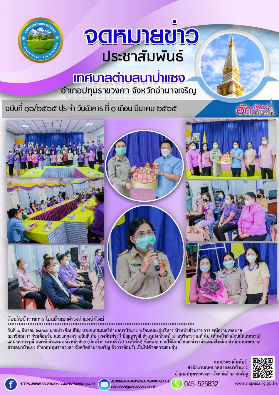 จดหมายข่าว ประชารสัมพันธ์ เทศบาลตำบลนาป่าแซง ฉบับที่ ๑๖/๒๕๖๕ ประจำ วันอังคาร ที่ ๑ เดือน มีนาคม ๒๕๖๕ [1 มีนาคม 2565]