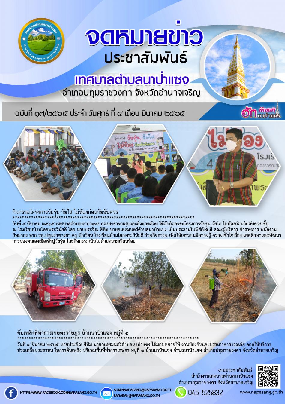 จดหมายข่าว ประชารสัมพันธ์ เทศบาลตำบลนาป่าแซง ฉบับที่ ๑๗/๒๕๖๕ ประจำ วันศุกร์ ที่ ๕ เดือน มีนาคม ๒๕๖๕ [4 มีนาคม 2565]