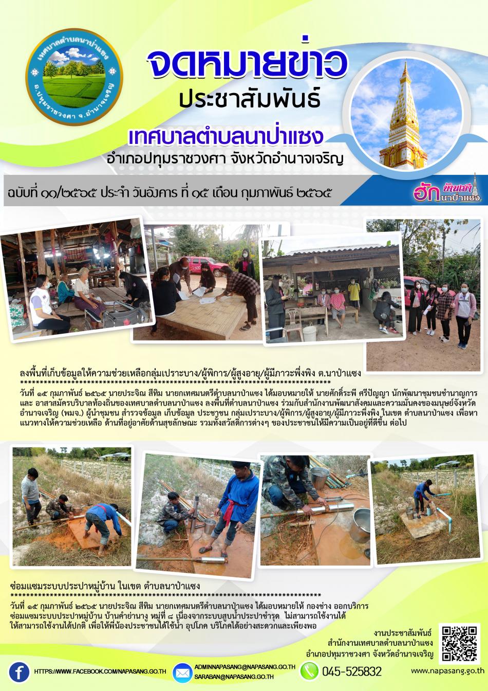 จดหมายข่าวประชาสัมพันธ์ เทศบาลตำบลนาป่าแซง ฉบับที่ ๑๑/๒๕๖๕ ประจำ วันอังคาร ที่ ๑๕ เดือน กุมภาพันธ์ ๒๕๖๕ [15 กุมภาพันธ์ 2565]