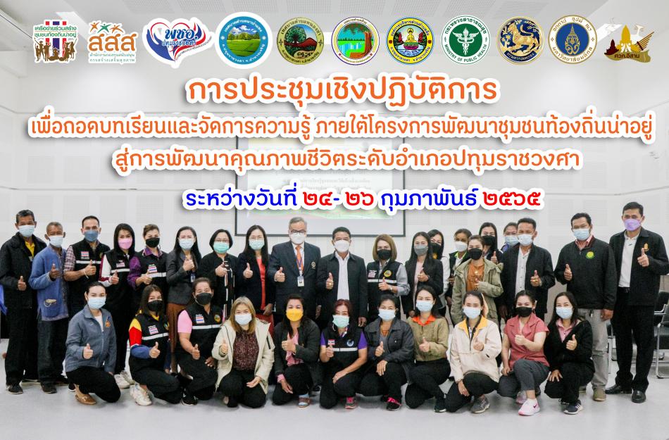 การประชุมเชิงปฏิบัติการเพื่อถอดบทเรียนและจัดการความรู้ ภายใต้โครงการพัฒนาชุมชนท้องถิ่นน่าอยู่ สู่การพัฒนาคุณภาพชีวิตระดับอำเภอปทุมราชวงศา วันที่ ๒๔-๒๖ กุมภาพันธ์ ๒๕๖๕ [24 กุมภาพันธ์ 2565]