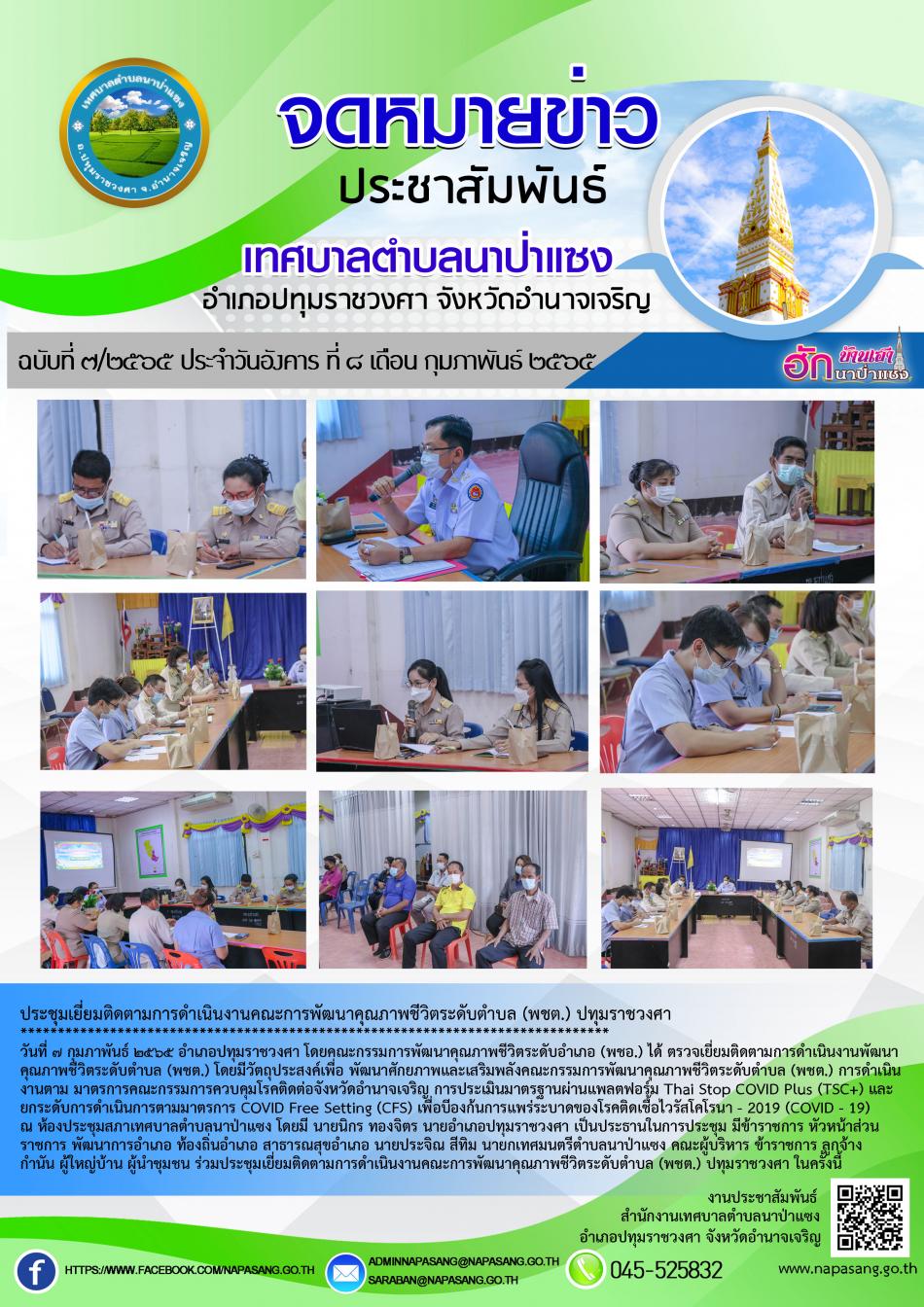 ประชุมเยี่ยมติดตามการดำเนินงานคณะการพัฒนาคุณภาพชีวิตระดับตำบล (พชต.) ปทุมราชวงศา [7 กุมภาพันธ์ 2565]