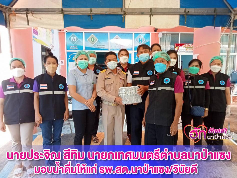 นายประจิณ สีทิม นายกเทศมนตรีตำบลนาป่าแซง พร้อมคณะบริหาร มอบน้ำดื่มให้กับ รพ.สต.นาป่าแซง/วินัยดี [29 กันยายน 2564]