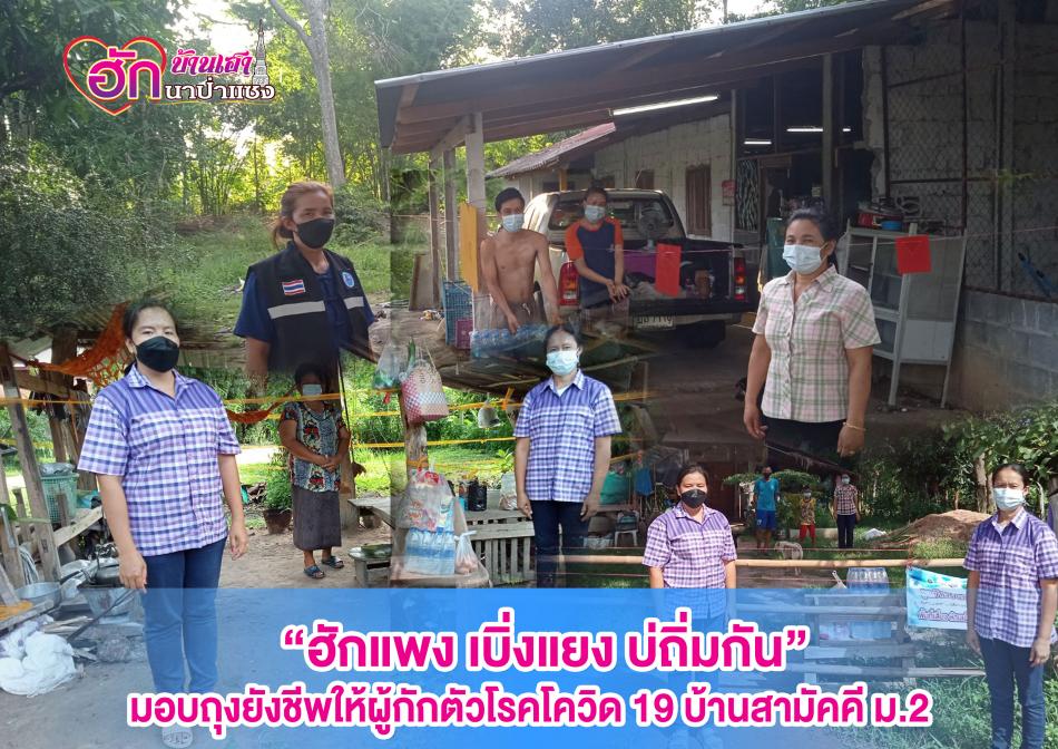 นายประจิณ สีทิม นายกเทศมนตรีตำบลนาป่าแซง พร้อมคณะผู้บริหาร มอบถุงยังชีพผู้กักตัว บ้านสามัคคี ม.2 [13 กันยายน 2564]