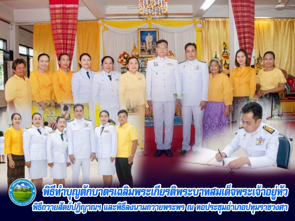 พิธีทำบุญตักบาตรเฉลิมพระเกียรติพระบาทสมเด็จพระเจ้าอยู่หัว ณ วัดศรีชมภู่ และพิธีถวายสัตย์ปฏิญาณฯ และพิธีลงนามถวายพระพร ณ หอประชุมอำเภอฯ [28 กรกฎาคม 2568]