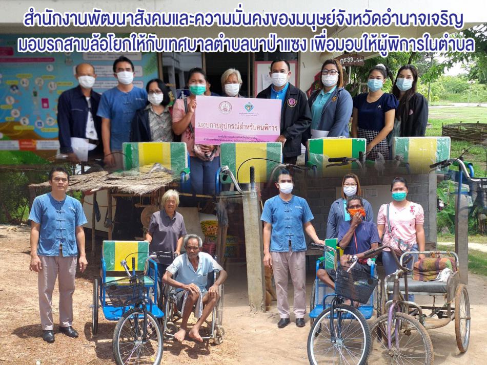 สำนักงานพัฒนาสังคมและความมั่นคงของมนุษย์ จังหวัดอำนาจเจริญ มอบรถสามล้อชนิดมือโยกให้กับผู้พิการ