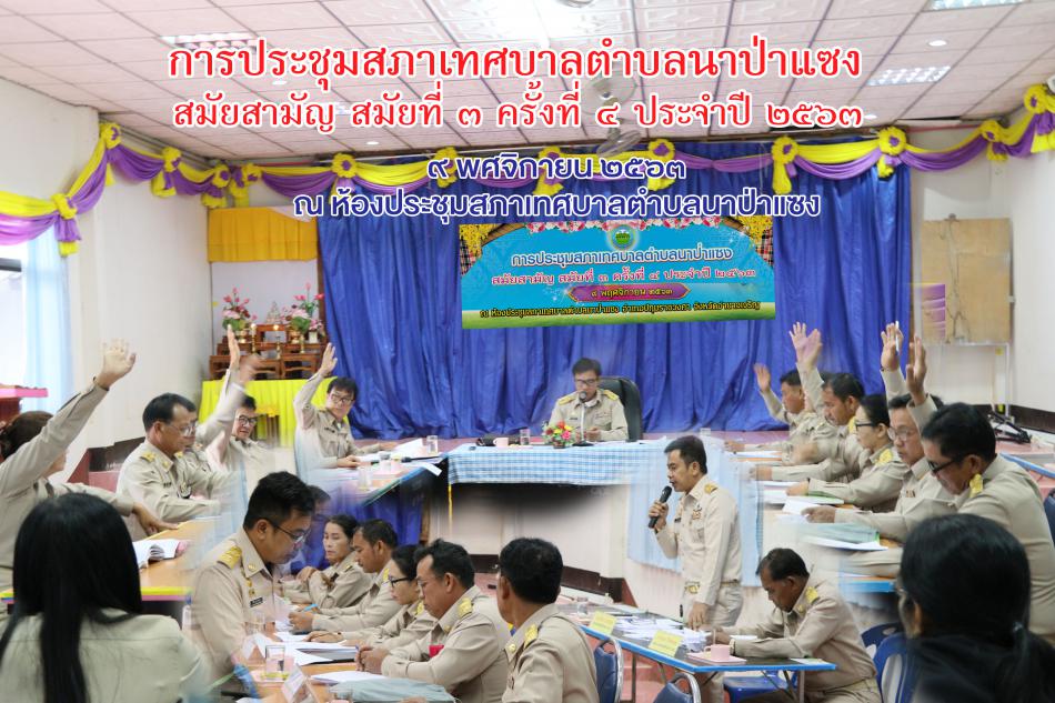 การประชุมสภาเทศบาลตำบลนาป่าแซง สมัยสามัญ สมัยที่ ๔ ประจำปี ๒๕๖๓