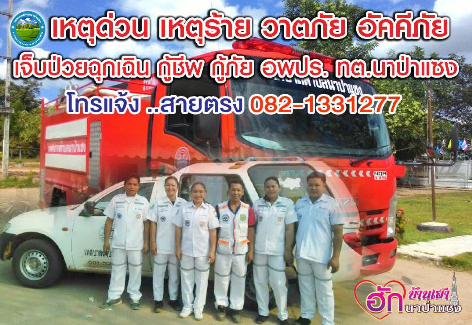 เหตุด่วน เหตุร้าย วาตภัย อัคคีภัย เจ็บป่วยฉุกเฉิน แจ้ง..กู้ชีพ กู้ภัย อปพร.เทศบาลตำบลนาป่าแซง โทรสายตรง.. 082-1331277 ตลอด 24 ชั่วโมง..บริการฟรี