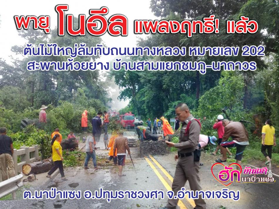 พายุโนอึลแผลงฤทธิ์ แล้วทำต้นไม้ใหญ้ล้มขวางถนนเส้นบ้านสามแยกชมภู-บ้านนาถาวร ช่วงสะพานห้วยยาง