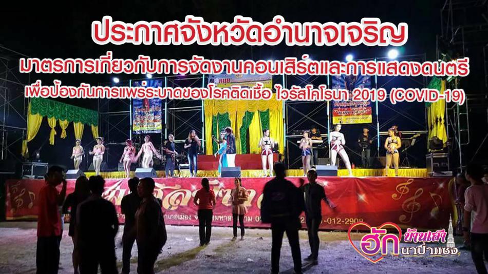ประกาศจังหวัดอำนาจเจริญ เรื่อง มาตรการเกี่ยวกับการจัดงานคอนเสิร์ตและการแสดงดนตรี เพื่อป้องกันการแพร่ระบาดของโรคลิดเชื้อไวรัสโคโรนา 2019 (COVID - 19)