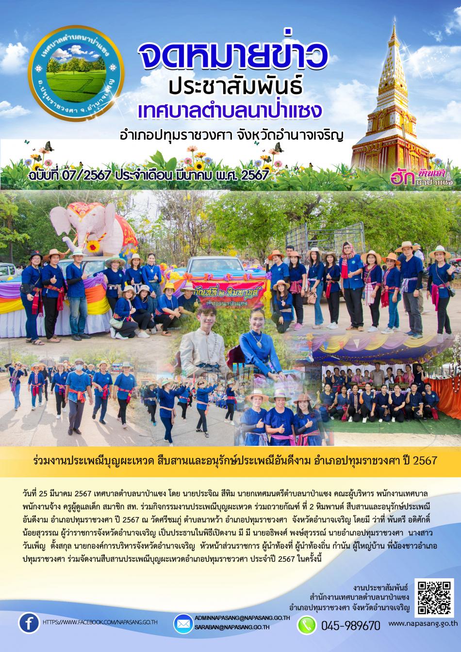 ประชาสัมพันธ์จดหมายข่าวเทศบาลตำบลนาป่าแซง ฉบับที่ 07/2567 ประจำเดือน มีนาคม พ.ศ. 2567 [11 เมษายน 2567]