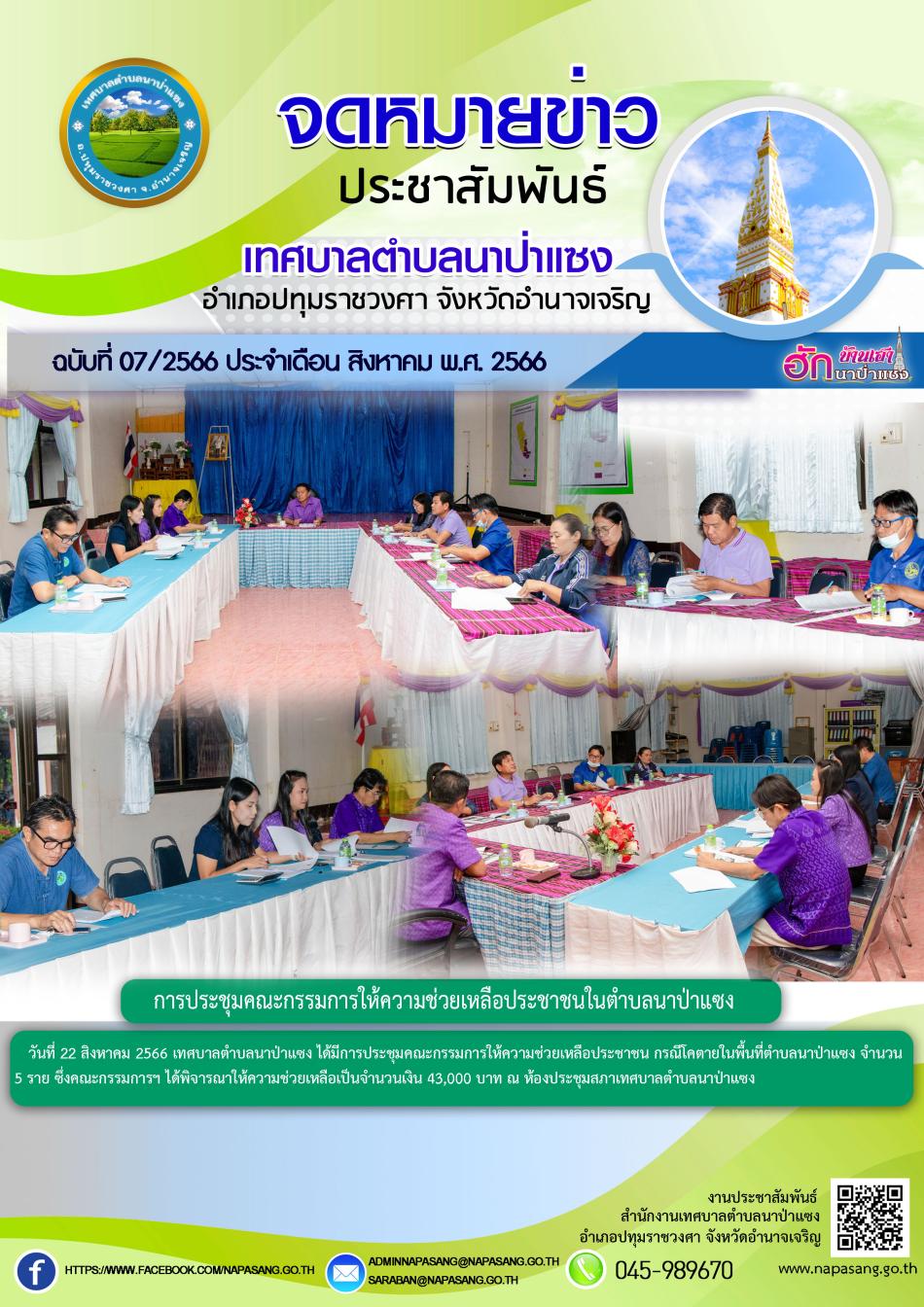 ประชาสัมพันธ์จดหมายข่าวเทศบาลตำบลนาป่าแซง ฉบับที่ 07/2566 ประจำเดือน สิงหาคม พ.ศ. 2566 [5 กันยายน 2566]
